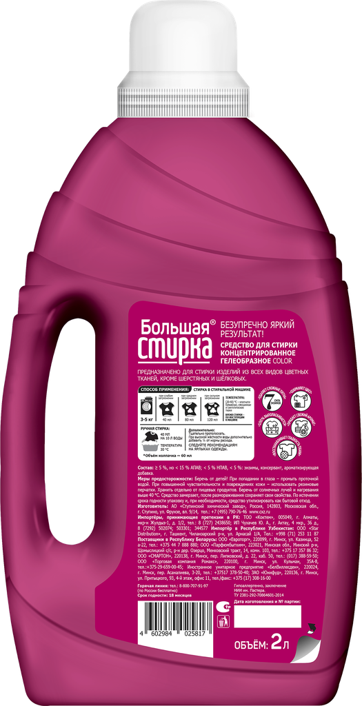 Ниже Вы можете прочитать отзывы на Гель для стирки Большая стирка "Color", концентрат, 2 л, ознакомится с подробными характеристиками, посмотреть интересные обзоры и фотографии на Гель для стирки Большая стирка "Color", концентрат, 2 л.