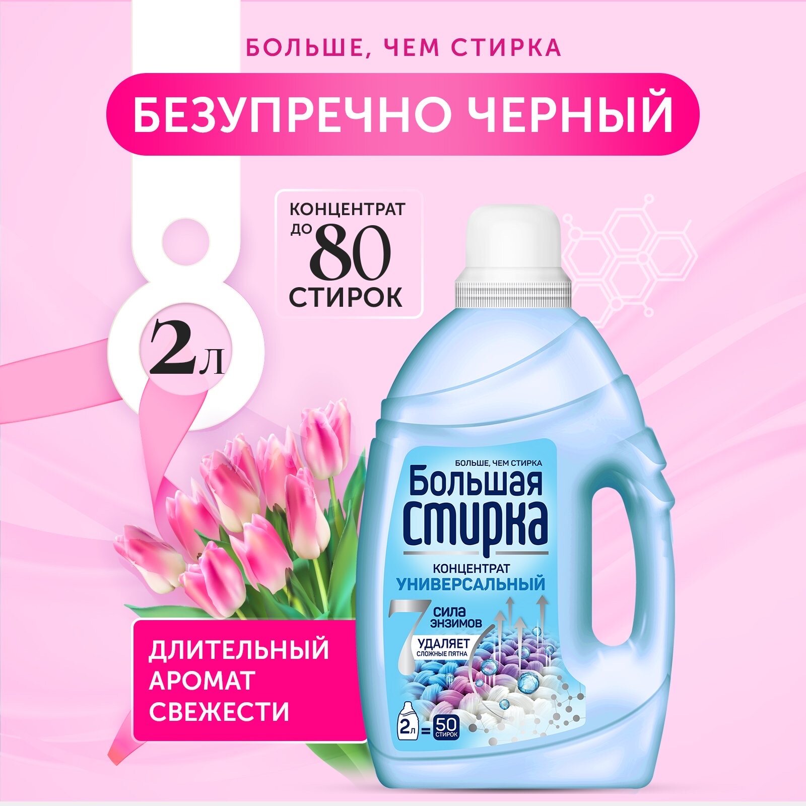 Большая стирка Гель для стирки темно окрашенного и черного белья, Порошок жидкий, универсальный, 2 л