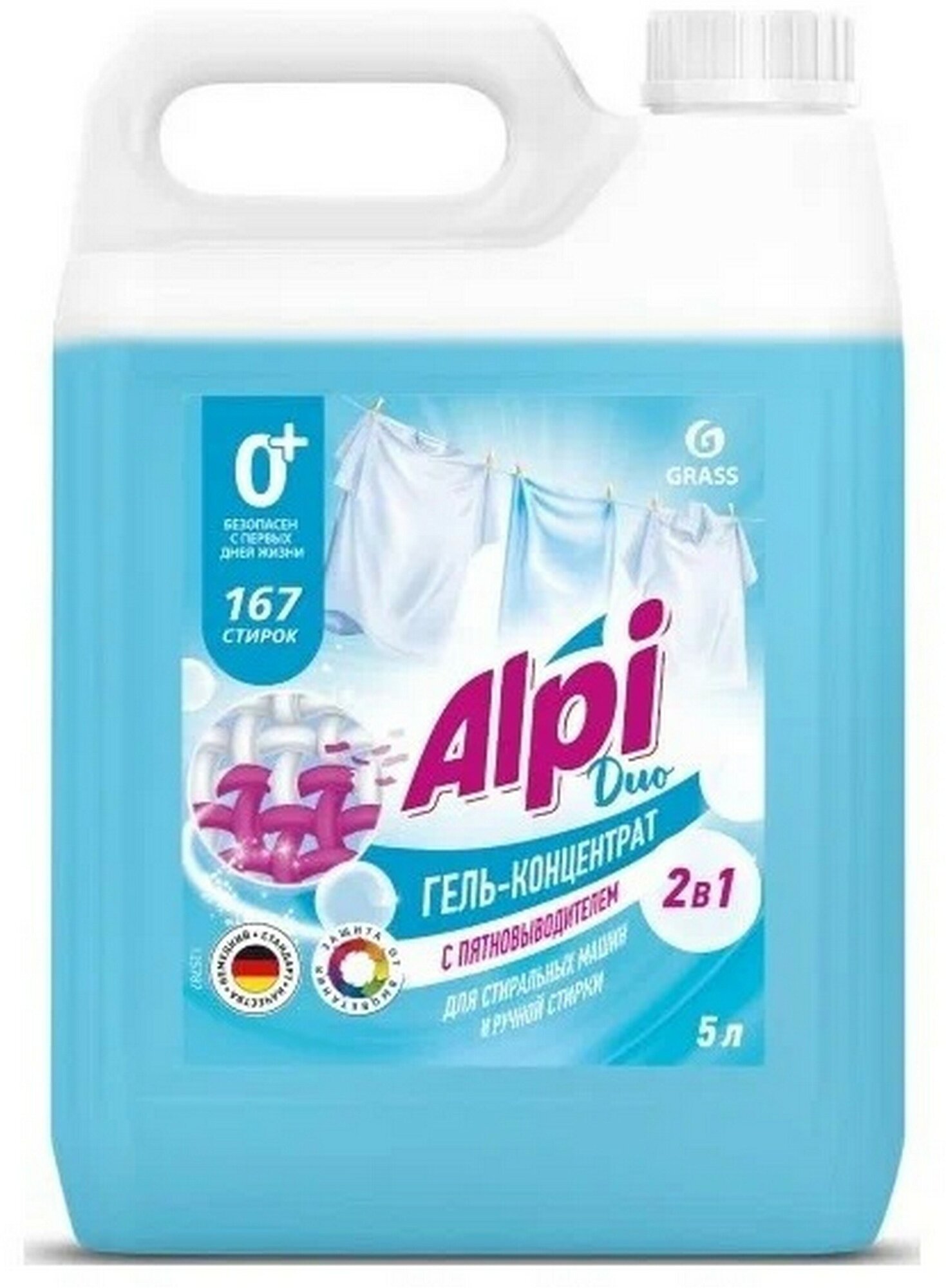 Гель для стирки 2в1 Grass Alpi Duo gel универсальный, концентрат, гипоаллергенный, пятновыводитель 5л