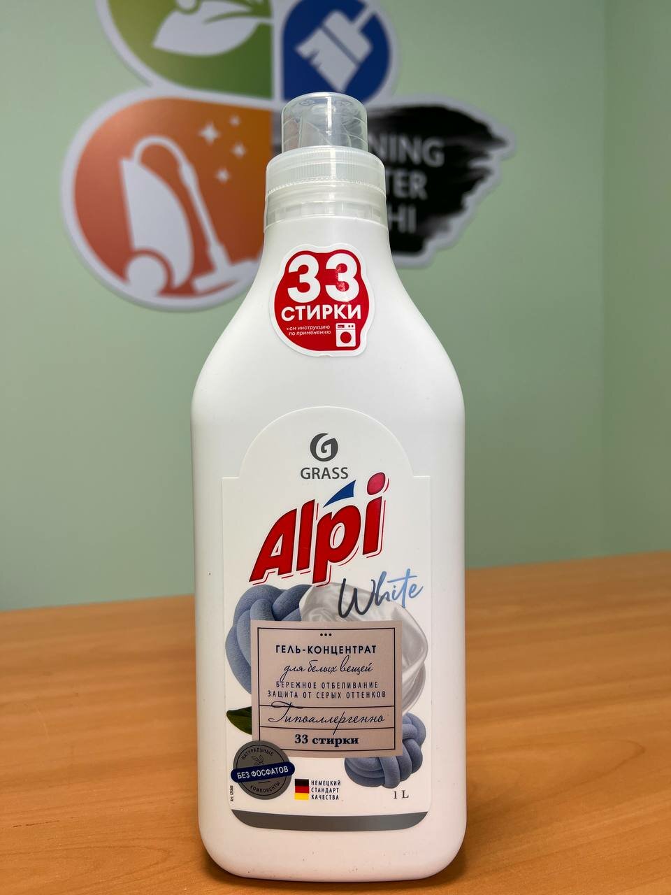 Гель для стирки белого белья Grass / Грасс Alpi White жидкий концентрат гипоаллергенный без фосфатов в бутылке с флаконом 1л