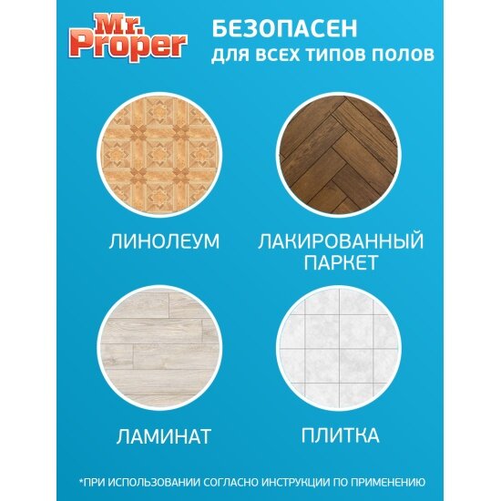 | Отзыв: | С этим средством мыть полы гораздо приятнее, чем просто водой. Пользуемся им уже давно, мистер Пропер ни разу не подвёл!