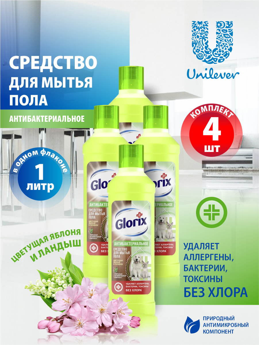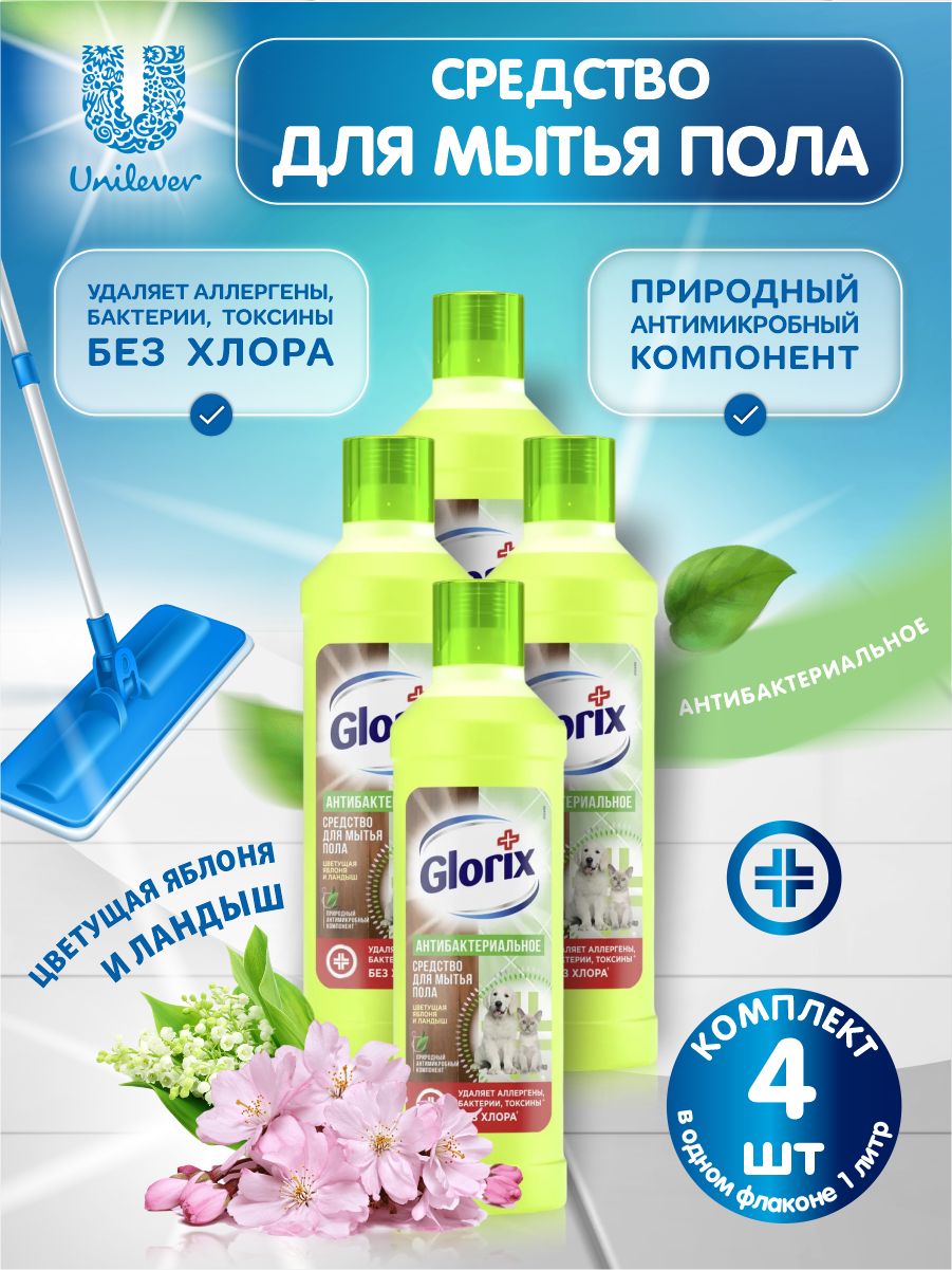 Купить GLORIX Чистящее средство для мытья пола Цветущая яблоня и ландыш 1 литр х 4 шт.