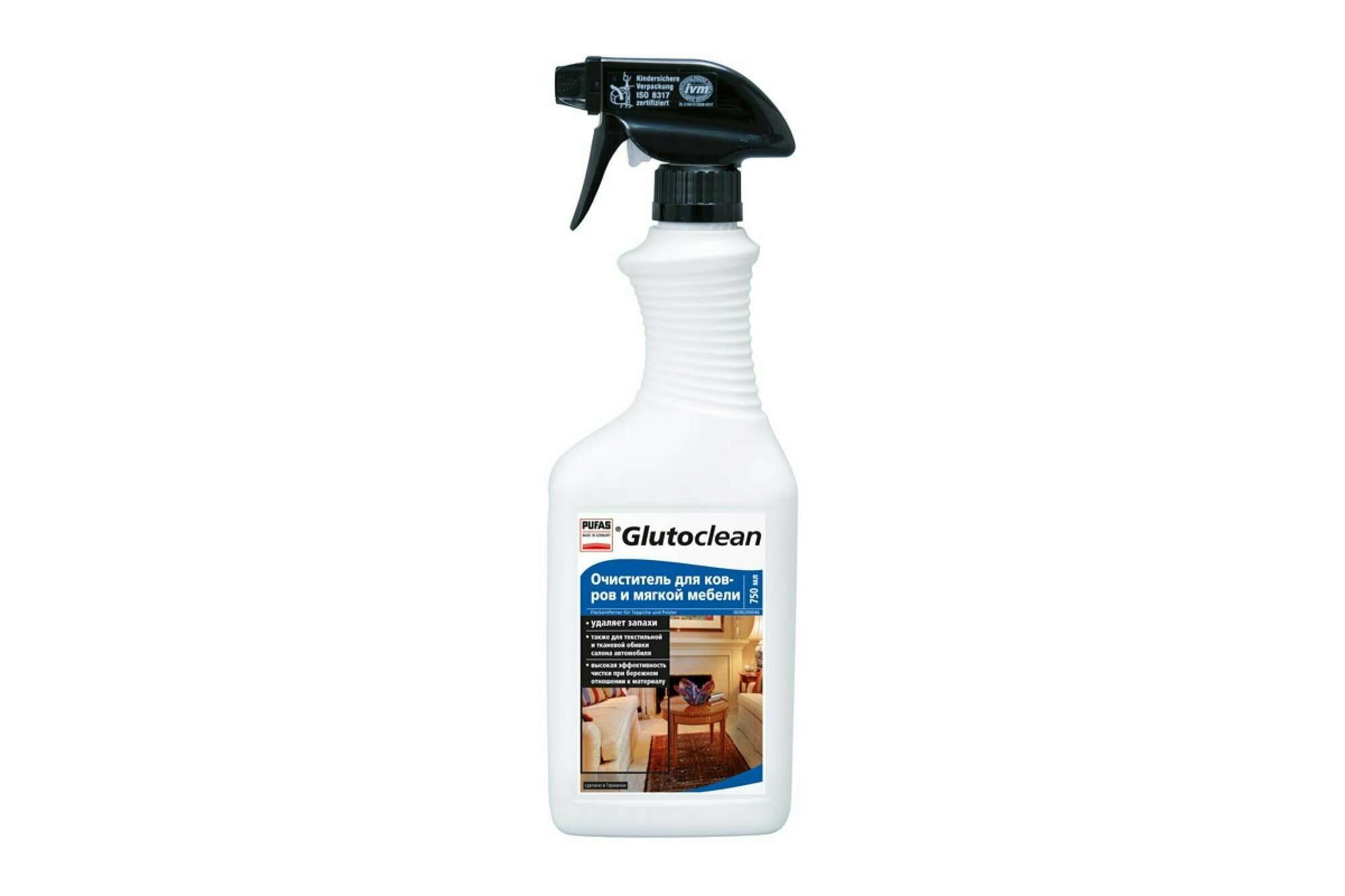 СохранитьОчиститель для ковров и мягкой мебели, Pufas Glutoclean, 750 мл. пятновыводитель,средство для чистки ковров, мягкой мебели и салона автомобиля. интересное: