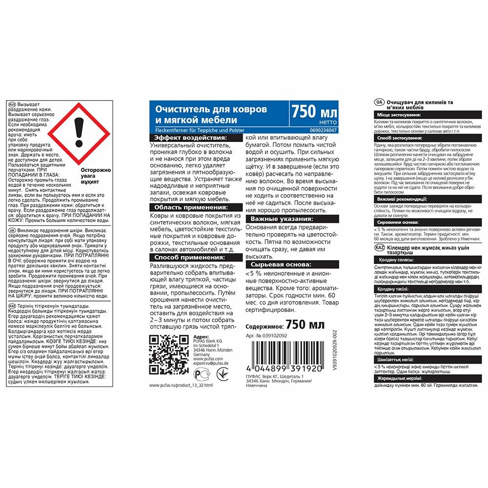 Ниже Вы можете прочитать отзывы на Очиститель для ковров и мягкой мебели, Pufas Glutoclean, 750 мл. пятновыводитель,средство для чистки ковров, мягкой мебели и салона автомобиля., ознакомится с подробными характеристиками, посмотреть интересные обзоры и фотографии на Очиститель для ковров и мягкой мебели, Pufas Glutoclean, 750 мл. пятновыводитель,средство для чистки ковров, мягкой мебели и салона автомобиля..