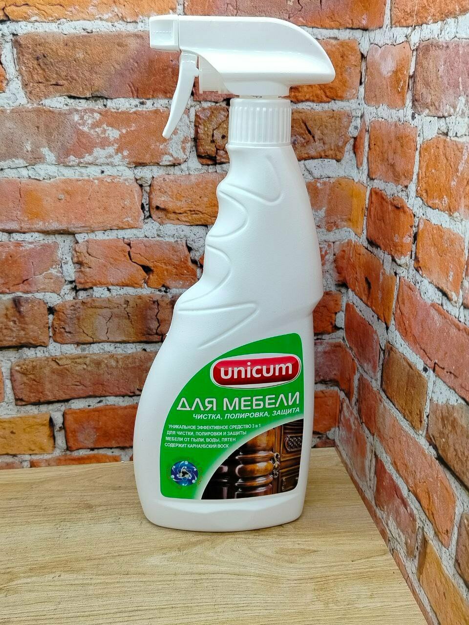 Чистящее моющее средство очиститель для уборки мебели очистки деревянной поверхности полировки защита от пыли воды пятен Unicum 500 мл спрей полироль