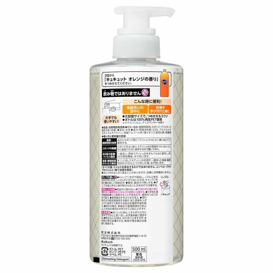 KAO Средство для мытья посуды "CuCute" (с ароматом апельсина / быстрое смывание) 500 мл, помпа