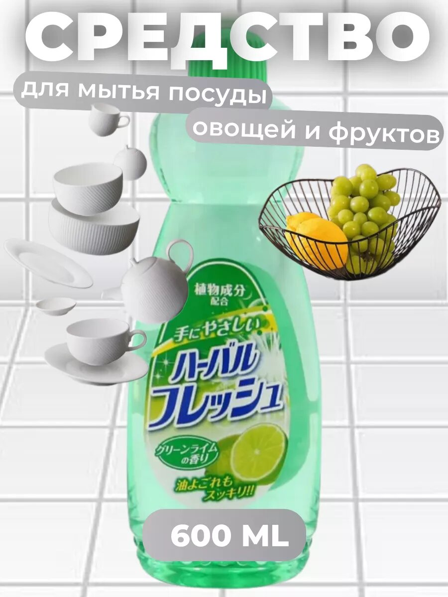 Японское средство для мытья посуды, овощей и фруктов, биоразлагаемое, антибактериальное, с ароматом лайма, 600 мл, Mitsuei, Япония