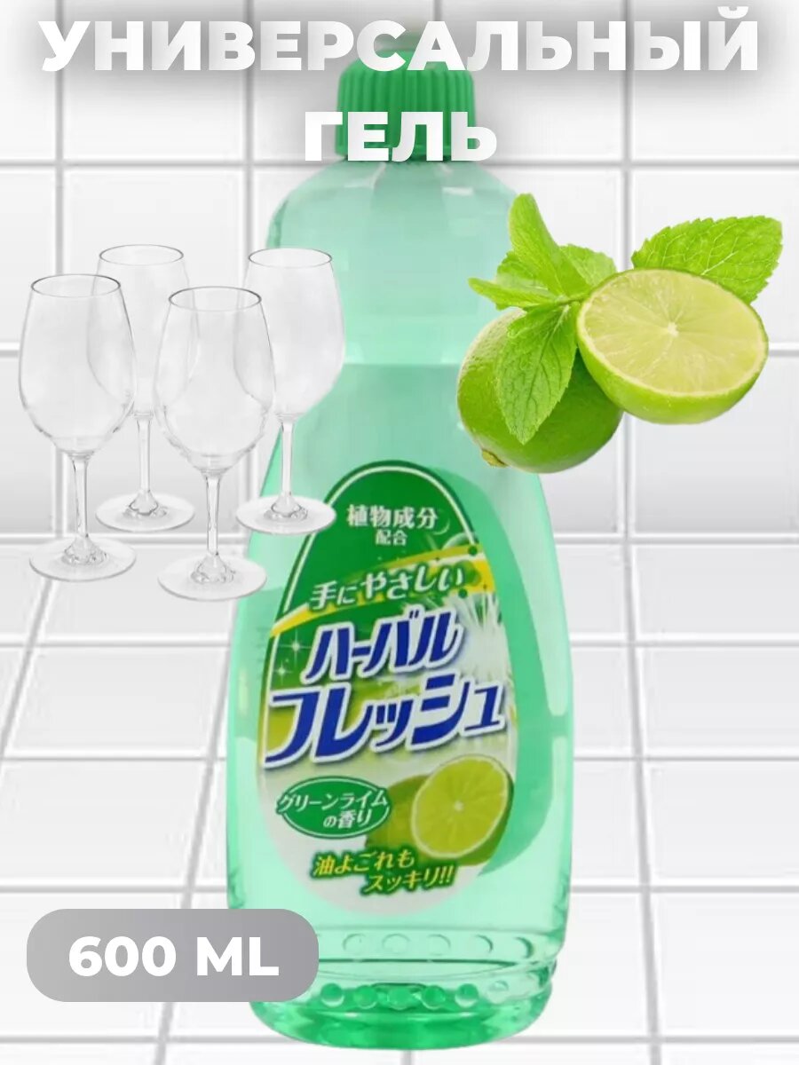 Японское средство для мытья посуды, овощей и фруктов, биоразлагаемое, антибактериальное, с ароматом лайма, 600 мл, Mitsuei, Япония / Гель для мытья универсальный растительного происхождения