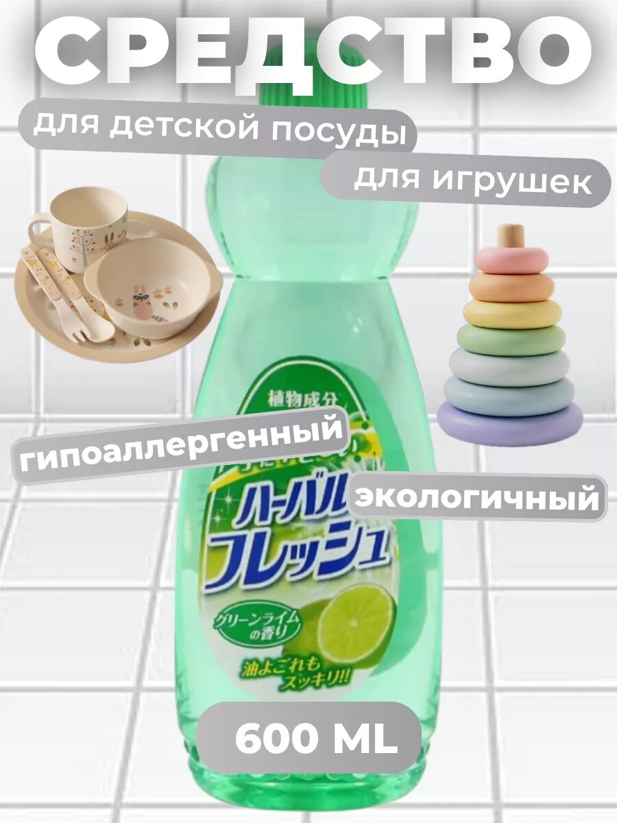 Средство для мытья посуды, овощей и фруктов Mitsuei Япония с ароматом лайма 600 мл, Универсальный гель для детской посуды и игрушек растительного происхождения экологичный гипоаллергенный