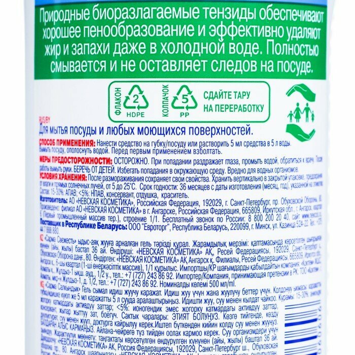 SARMA Гель для мытья посуды Свежесть, 0.5 л