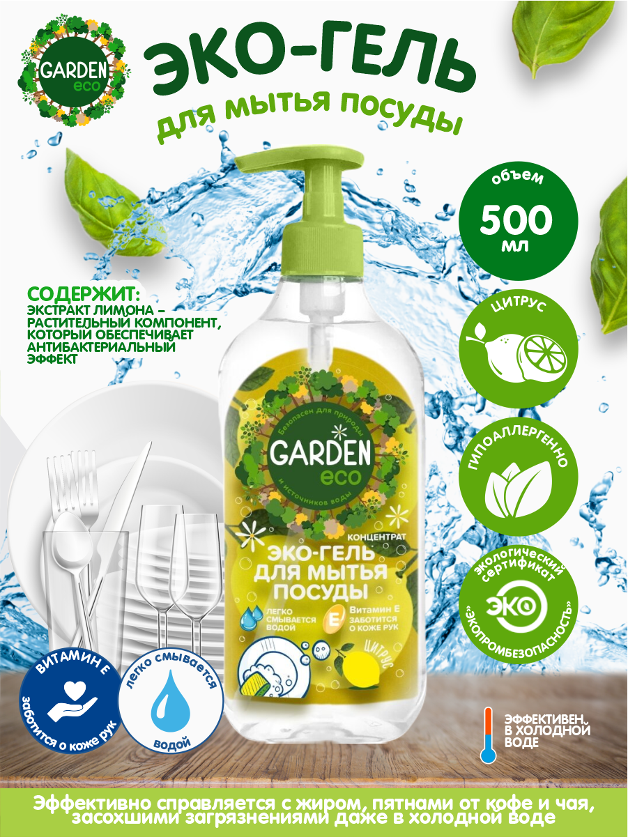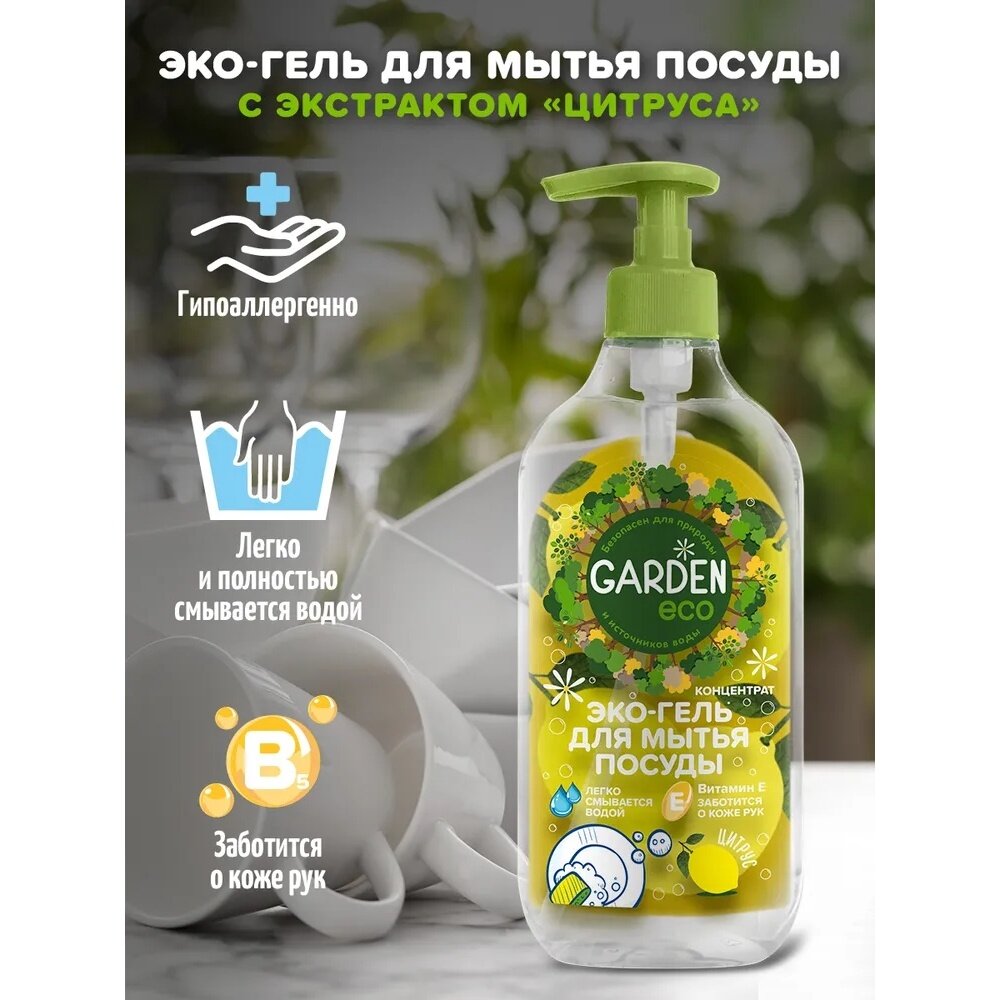 Средство для мытья посуды гарден эко 500мл экологичный гель концентрат цитрус
