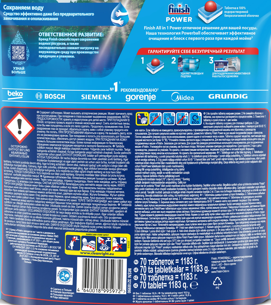 Таблетки для посудомоечных машин Finish Power, 70шт