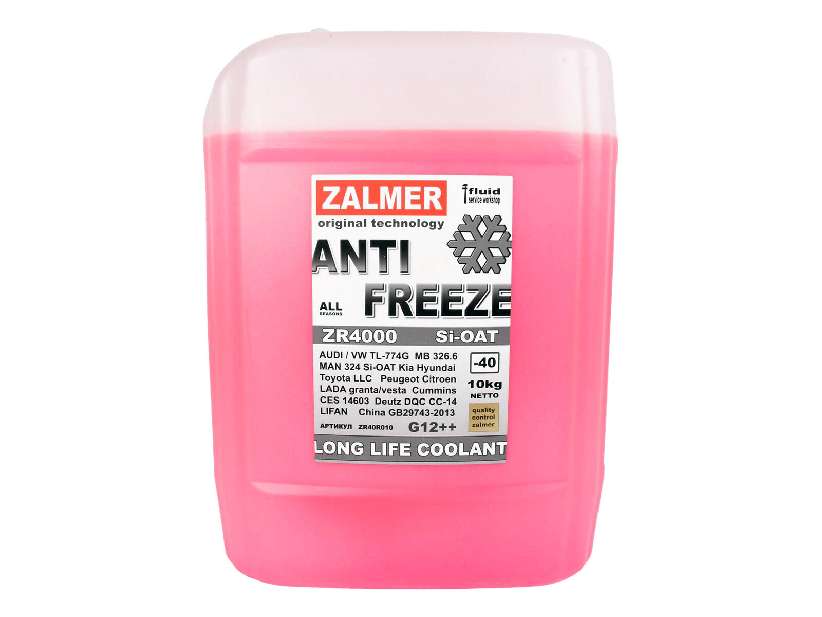 Антифриз ZALMER Antifreeze ZR4000 LLC G12+ красный -40С 10кг нетто ZR40R010