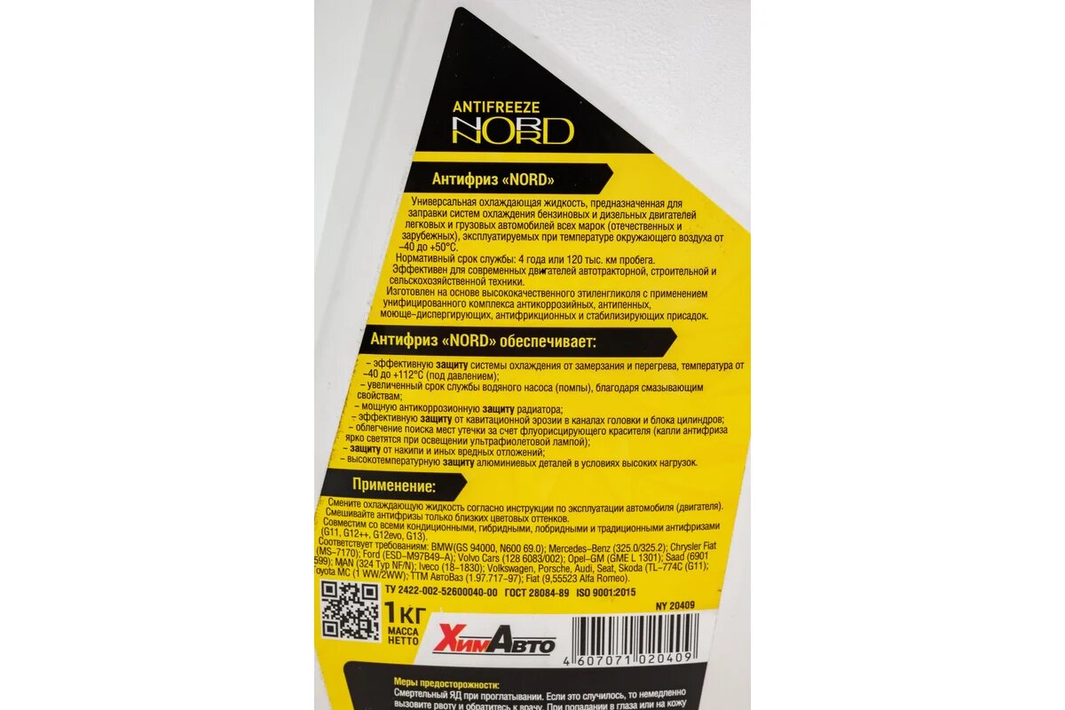 NORD NY 20409 Антифриз NORD High Quality Antifreeze готовый -40C желтый 1 кг NY 20409