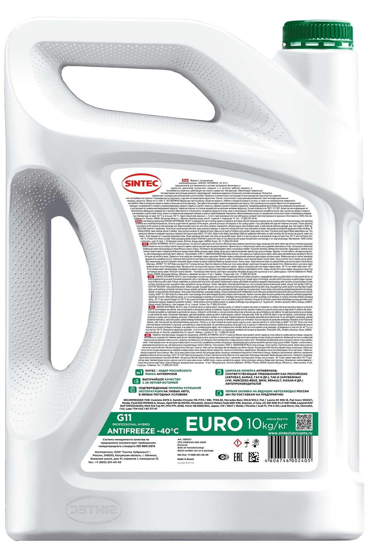 Антифриз SINTEC EURO G11 (-40) 10 л