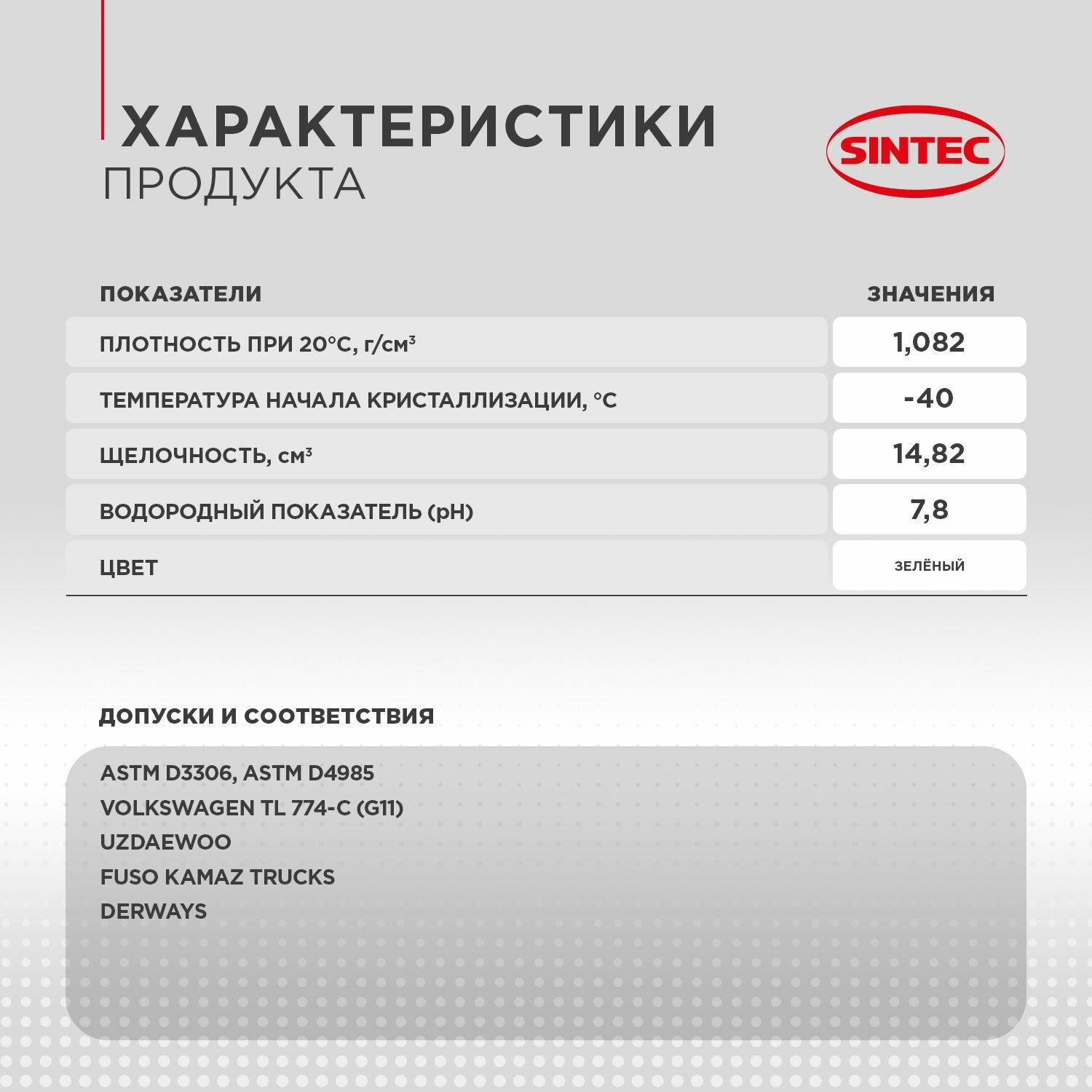 Купить SINTEC EURO G11 -40 силикатный антифриз 10кг для двигателя автомобиля, охлаждающая жидкость синтек в авто, зелёный, готовый к применению
