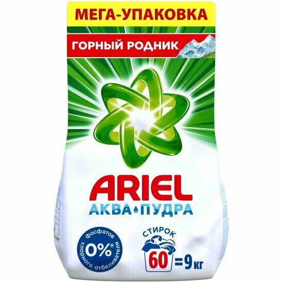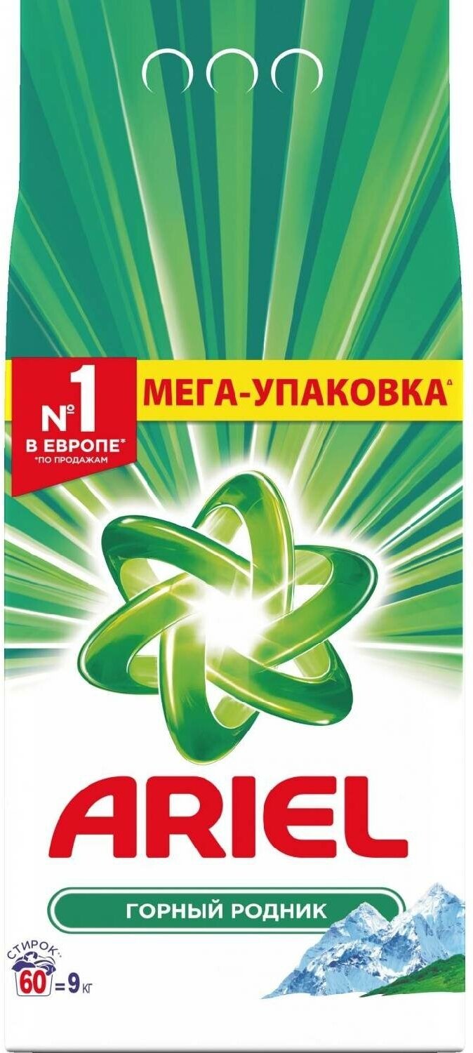 Стиральный порошок Ariel Автомат, Горный родник, 60 стирок, 9 кг