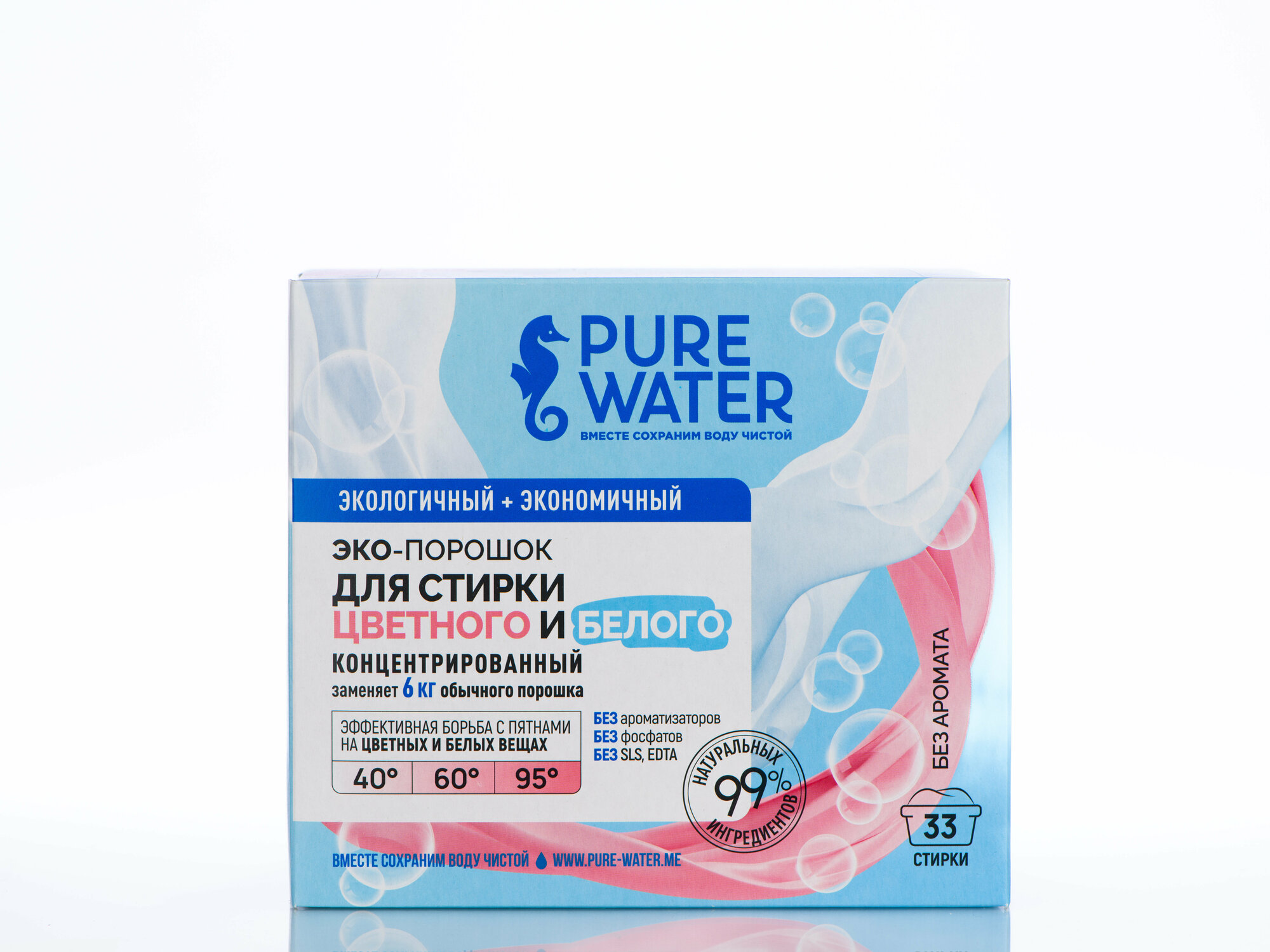 Стиральный порошок для белого и цветного Pure Water, концентрированный, 0,3 кг.