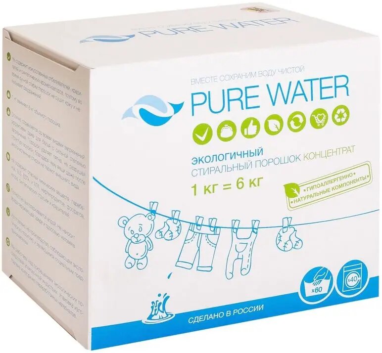 Стиральный порошок PURE WATER Экологичный концентрат, 1 кг, для детского белья, для деликатных тканей