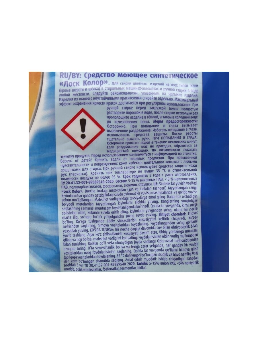 | Отзыв: | Моющее синтетическое средство под торговой маркой «Лоск Автомат Колор Актив-Займ 6» произведено ООО «Хенкель Рус» в России. Образец был приобретен в АО «Крокус Интернешнл» по адресу: Московская обл., Красногорский р-н, автодорога «Балтия», 26-й км, стр. 1. По результатам лабораторных испытаний данный товар подтвердил свое соответствие всем требованиям законодательства и признан качественным и безопасным. Этот порошок абсолютно безопасен. Он не оказывает раздражающего действия при попадании на кожу и конъюнктиву глаз. При попадании в желудок, дыхательные пути или в кровь (через кожные покровы) не оказывает токсичного воздействия на организм. Массовая доля фосфатов соответствует установленным нормам. Порошок хорошо вымывается из тканей после трехкратного ополаскивания. Кроме того, он образует минимальный объем пены. Стиральный порошок хорошо отстирывает белковые загрязнения (кровь), хотя, согласно маркировке, этот порошок не предназначен для удаления пятен белкового типа. Однако он недостаточно хорошо справляется с пигментно-масляными (например, жир). После 25 стирок этим порошком ткань остается такой же прочной. Порошок не влияет на образование пиллей (катышков) на ткани. Количество пиллей одинаковое при стирке с порошком и при стирке без порошка. Ткань не пожелтеет и не посереет после 25 контрольных стирок. Количество минеральных веществ, оседающих на ткани, соответствует установленным Роскачеством нормам. Это значит, что ткань не станет жесткой и грубой после стирки. Массовая доля пыли в составе порошка соответствует установленным нормам. Это означает, что порошок не несет опасности для лиц, страдающих астматическими заболеваниями. Фактическая масса нетто стирального порошка соответствует указанной в маркировке. |