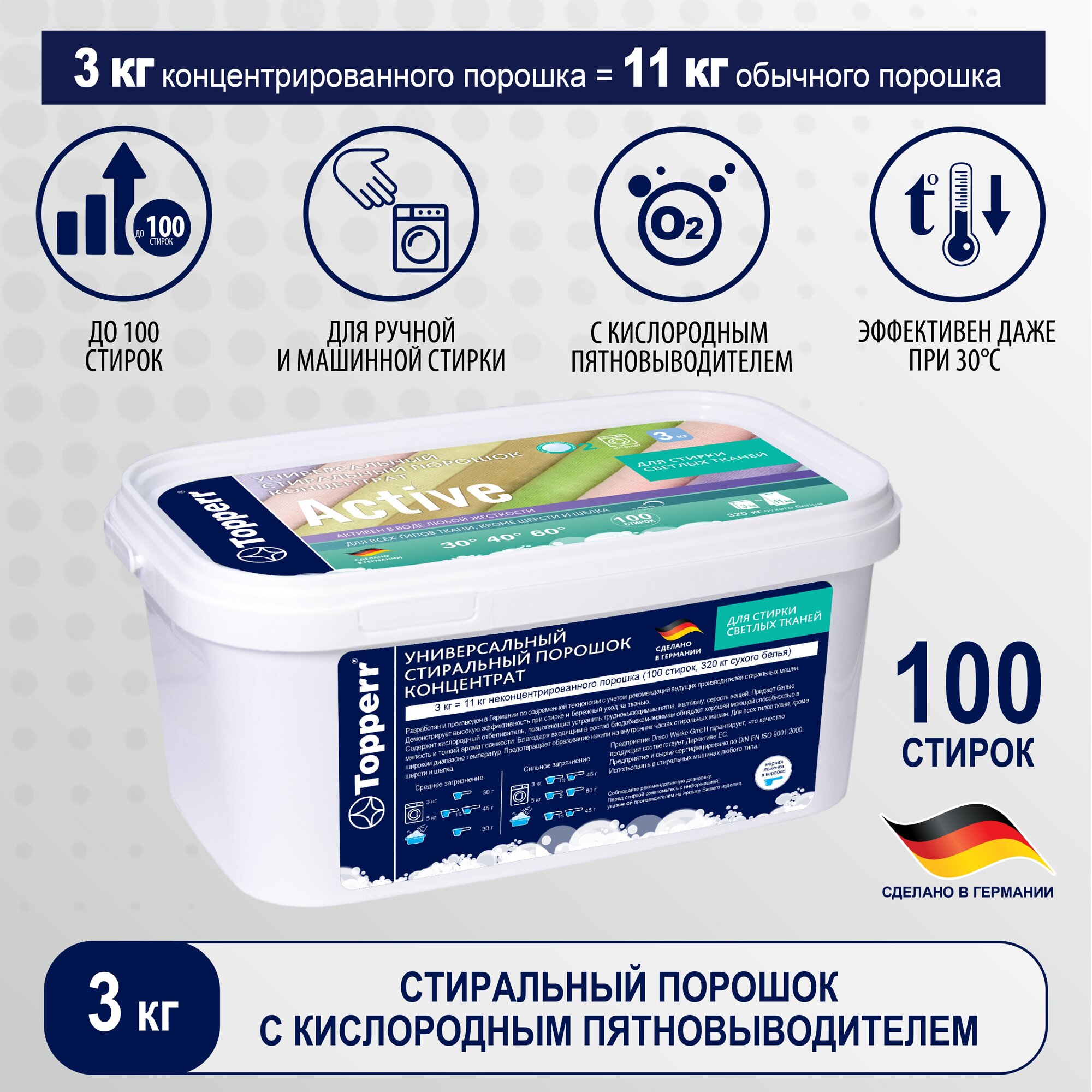 Topperr Стиральный порошок "Active", концентрат, универсальный, 3 кг