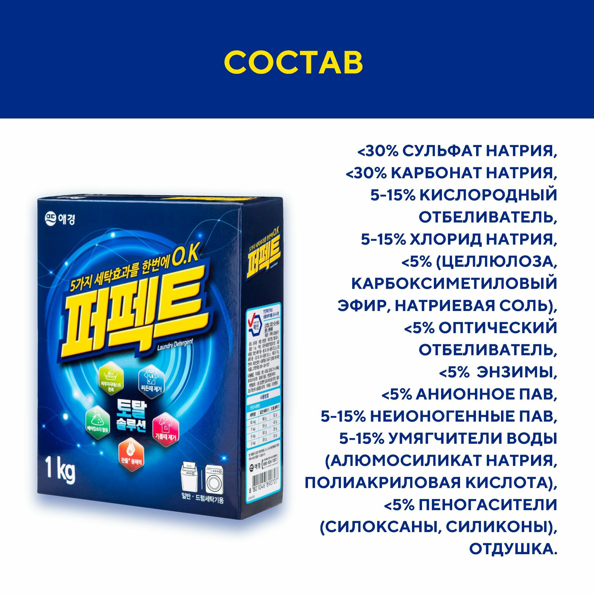 Aekyung Perfect 6 Solution Концентрированный стиральный порошок универсальный 1 кг