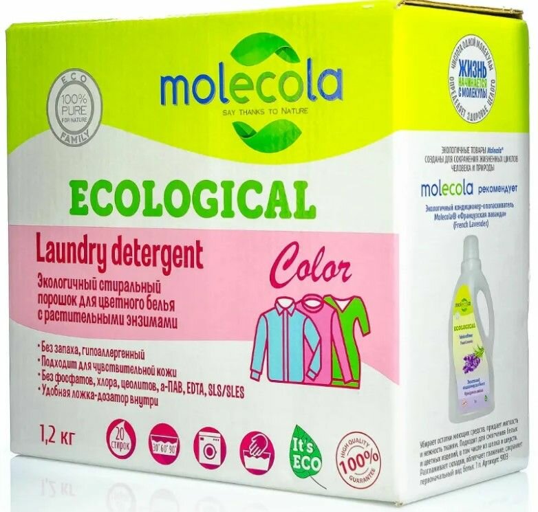 MOLECOLA Экологичный стиральный порошок с растительными энзимами для цветного белья и одежды. Color 1,2 кг