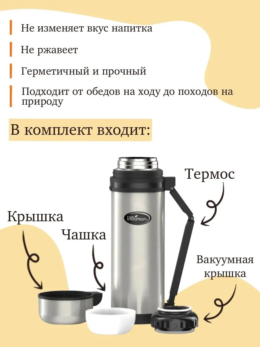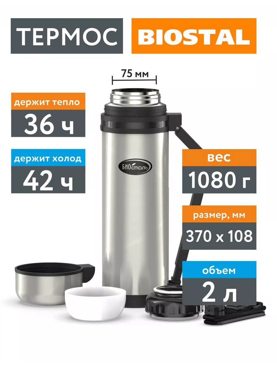 СохранитьТермос универсальный Вакуумный, доп чашка и ручка для переноски, Биосталь/Biostal (2),NG-2000-1 интересное: