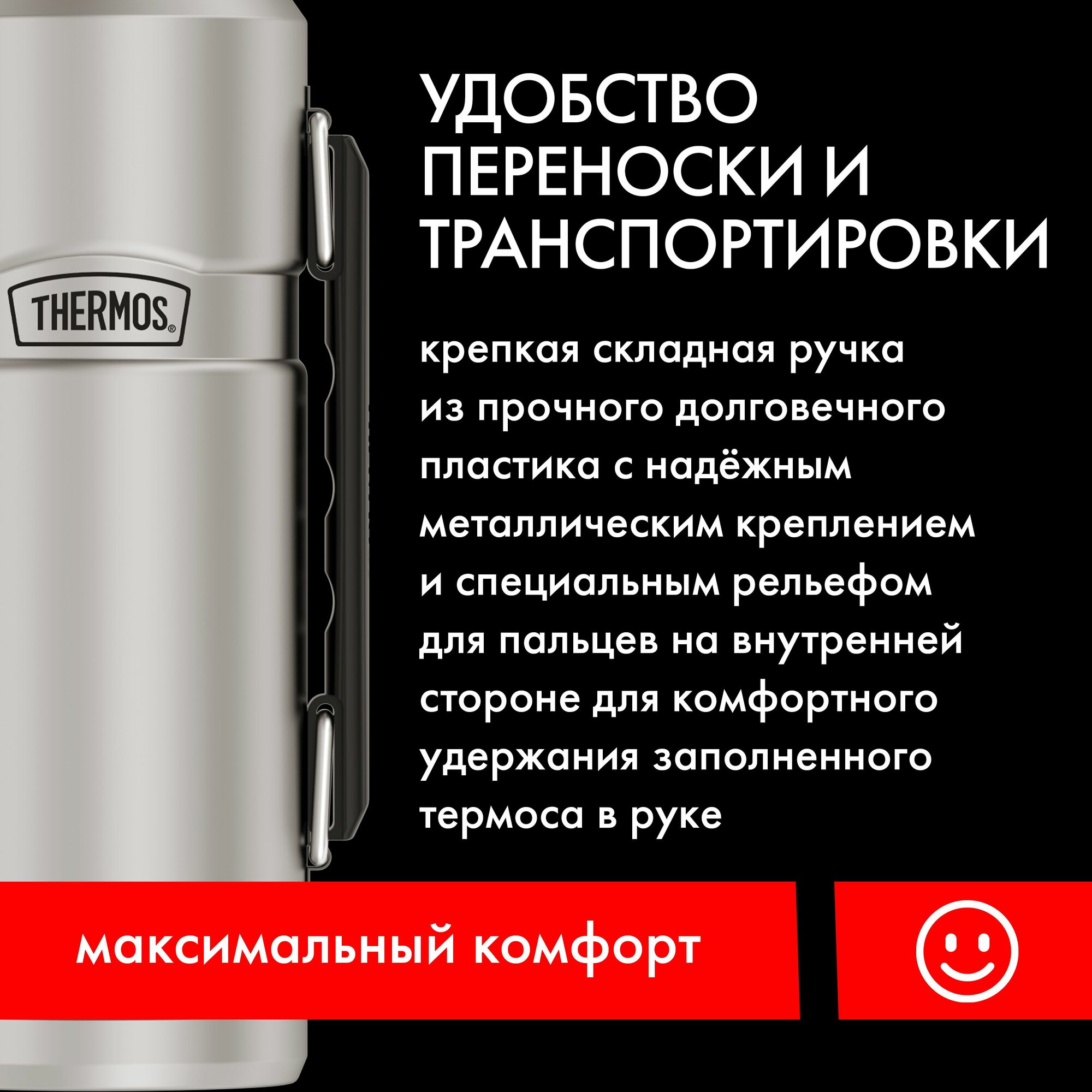 Термос Thermos King SK-2010 1,2 литра, с ручкой, стальной матовый (SK-2010 MS)