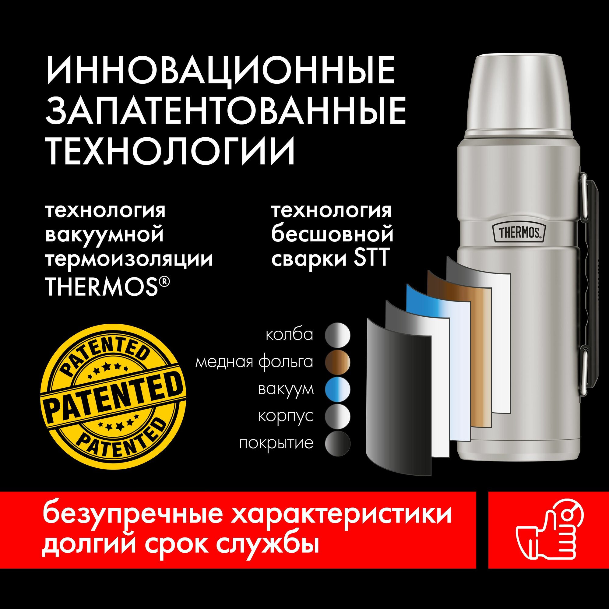 Термос Thermos King SK-2010 1,2 литра, с ручкой, красный матовый (SK-2010 MRR)