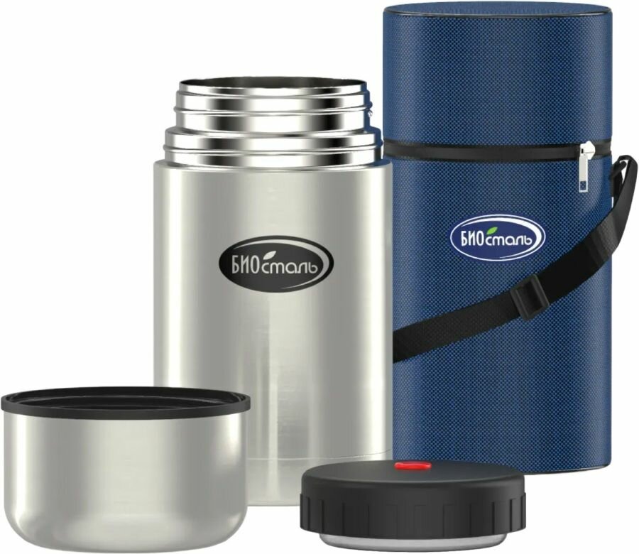 Термос для еды Biostal (1 литр) в чехле, стальной