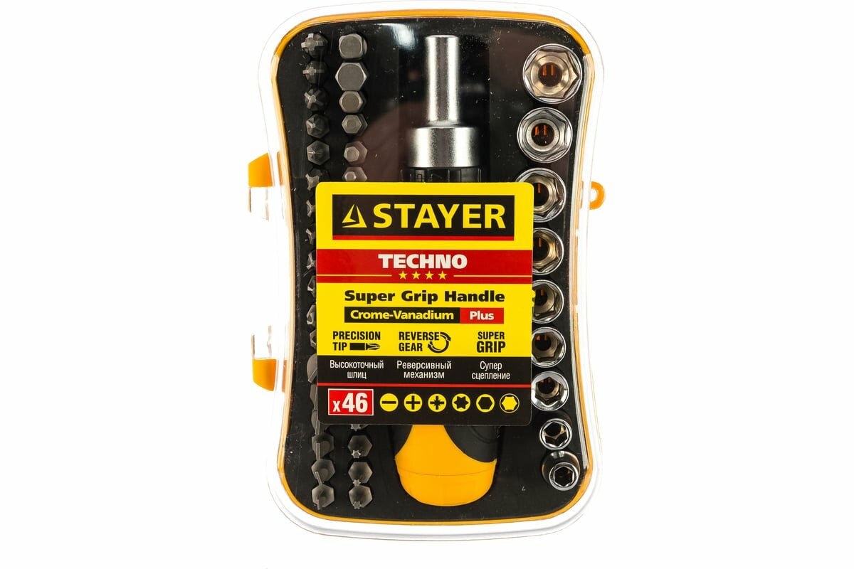STAYER Compact-46 набор: реверсивная отверка с насадками 46 шт(25084-H46)