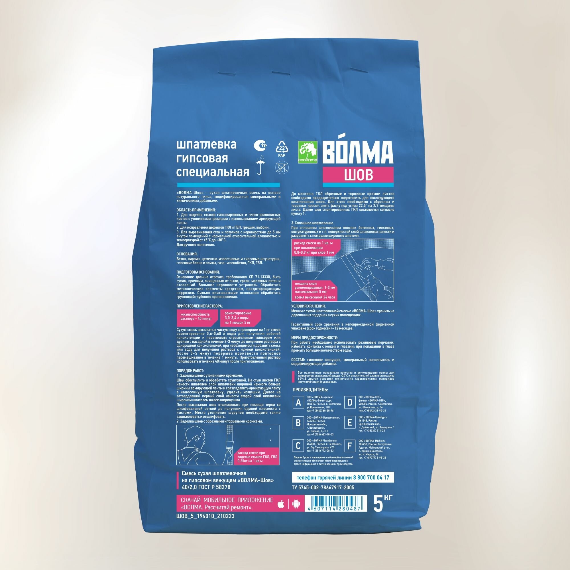 Шпаклевка гипсовая волма Шов для заделки стыков ГКЛ, 5кг