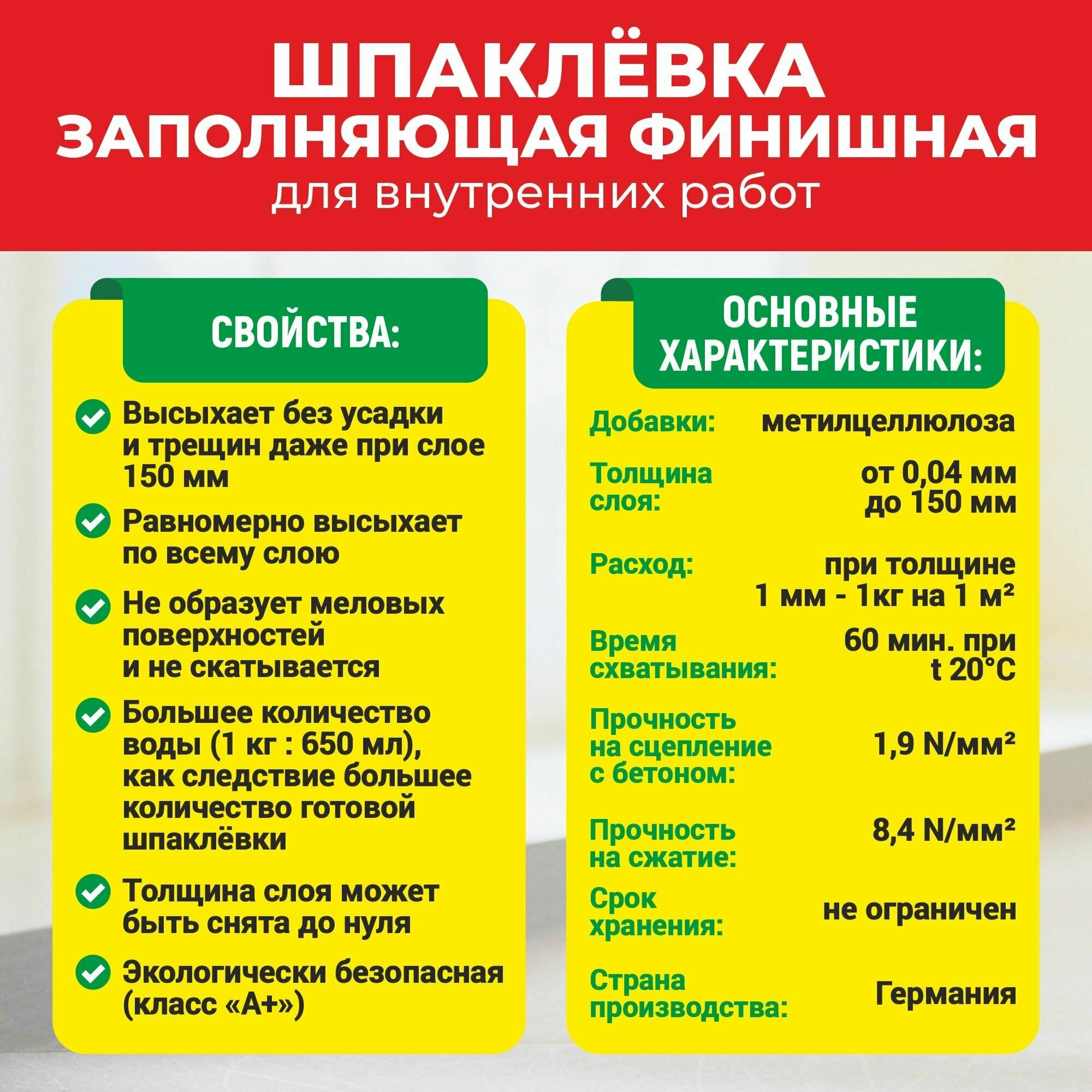 | Вид шпатлевки | финишная |