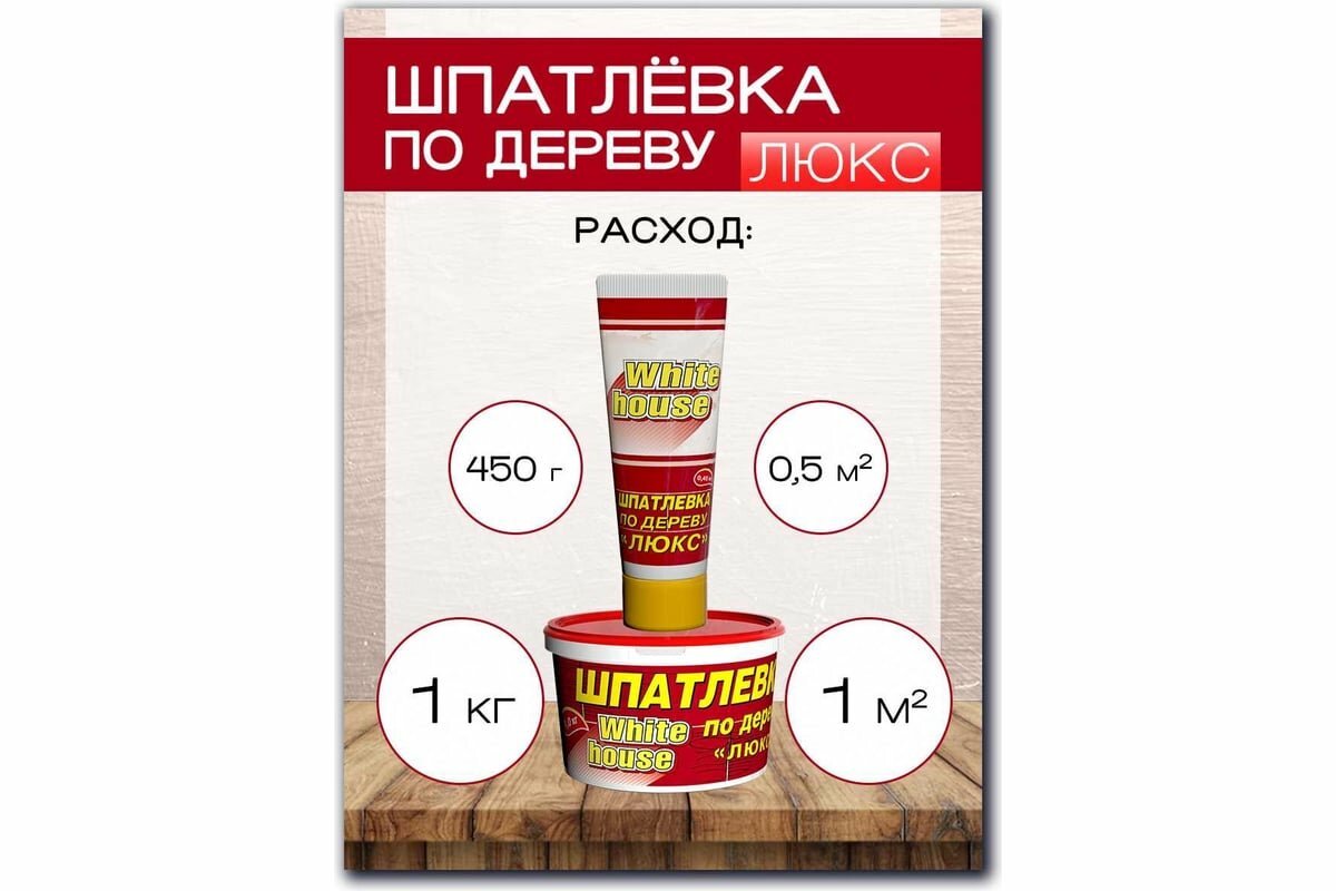 Шпатлевка по Дереву White House 0.45кг Белый, Малоусадочная, Окрашиваемая.