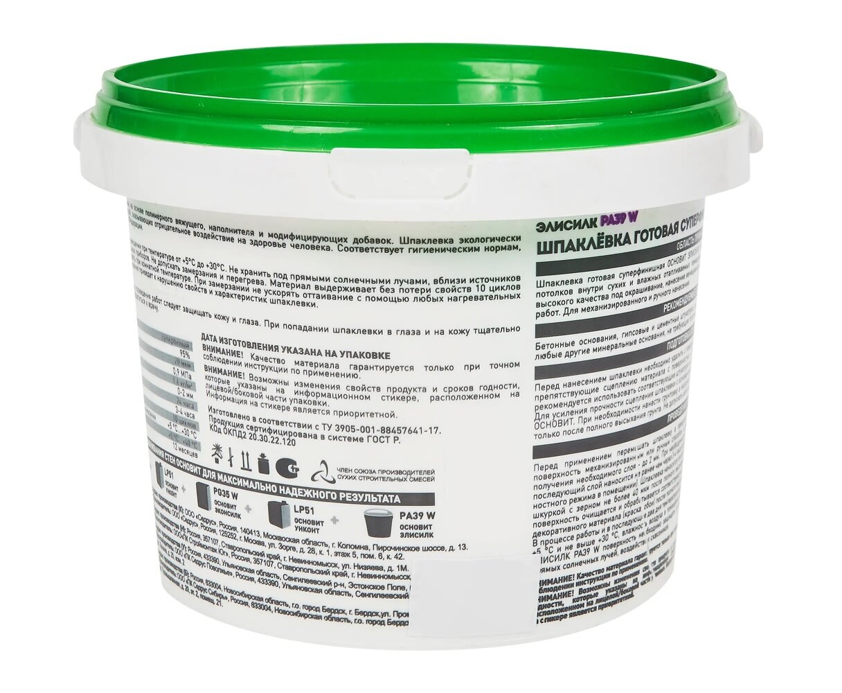 Шпаклевка готовая суперфинишная элисилк PA39 W (1кг) основит