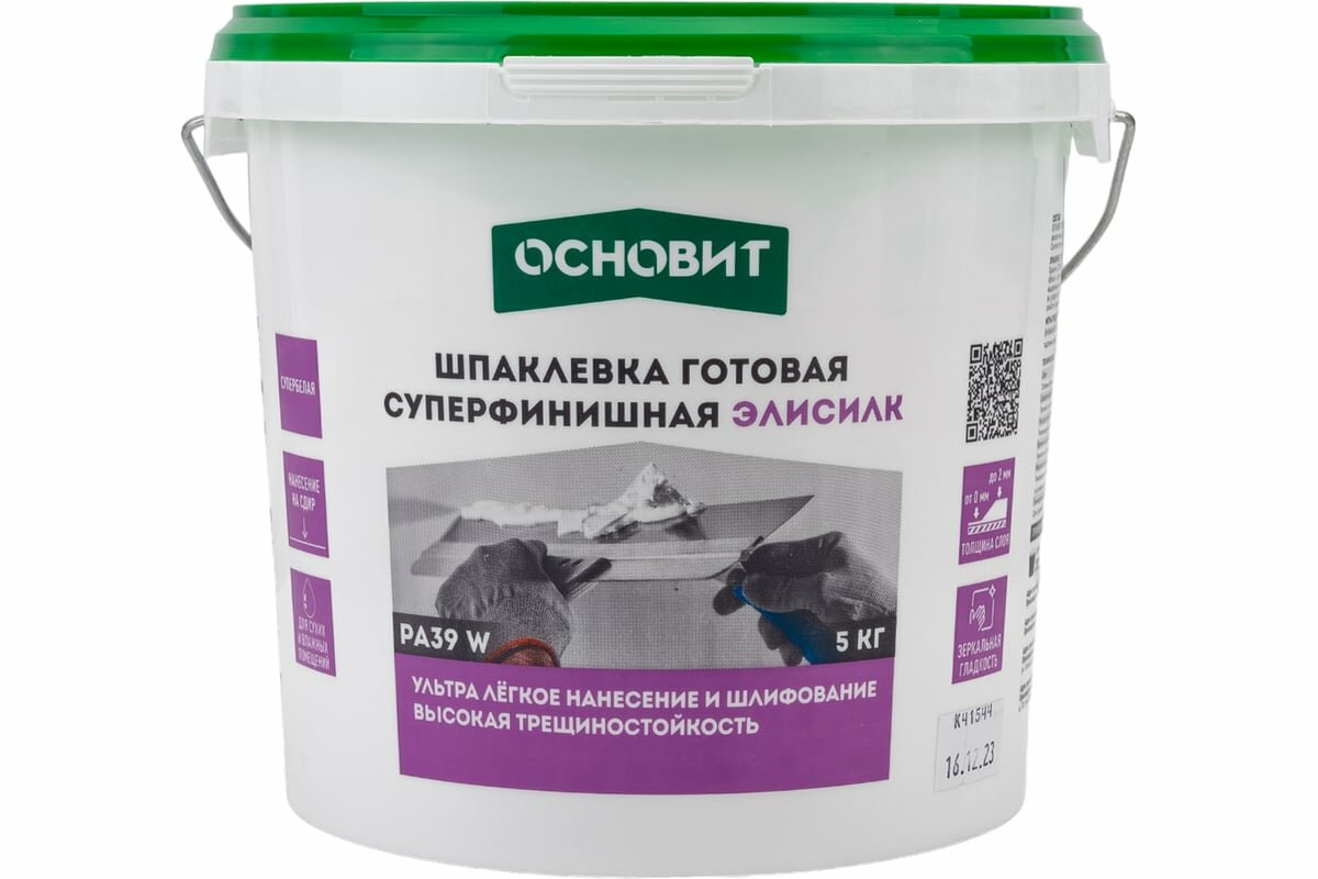 Шпаклевка готовая суперфинишная основит элисилк PA39 W (5 кг)