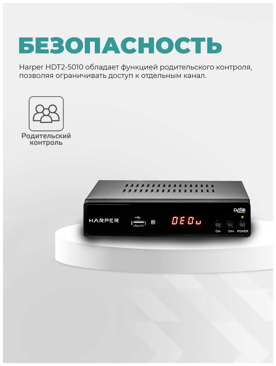 ТВ приставка DVB-T2 Harper HDT2-5010 ЭДО с экраном, метал. корпус интересное: