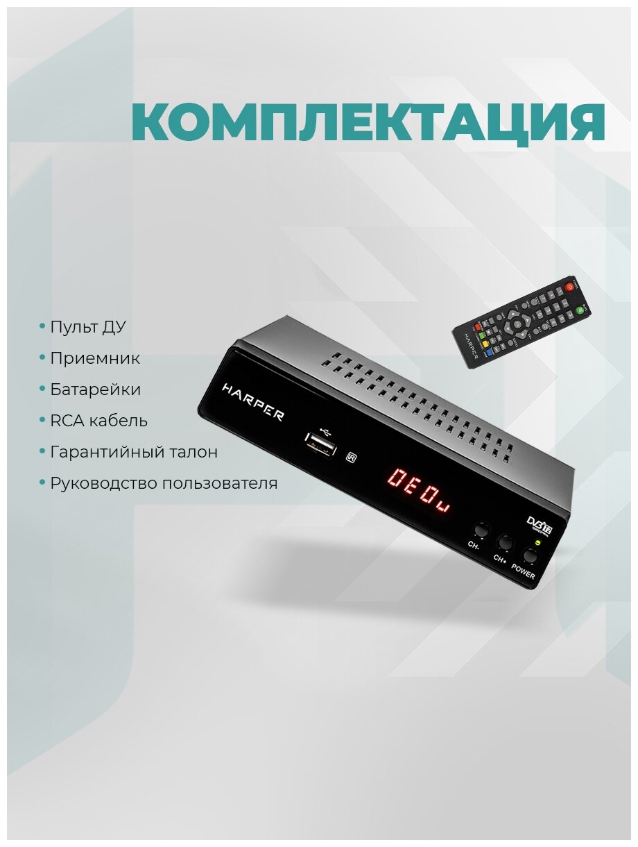 Ниже Вы можете прочитать отзывы на ТВ приставка DVB-T2 Harper HDT2-5010 ЭДО с экраном, метал. корпус, ознакомится с подробными характеристиками, посмотреть интересные обзоры и фотографии на ТВ приставка DVB-T2 Harper HDT2-5010 ЭДО с экраном, метал. корпус.