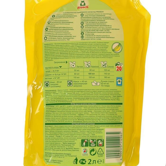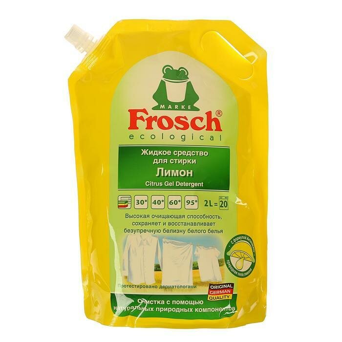 Жидкость для стирки Frosch Лимон, 2.154 кг, 2 л, универсальное, для белых и светлых тканей интересное: