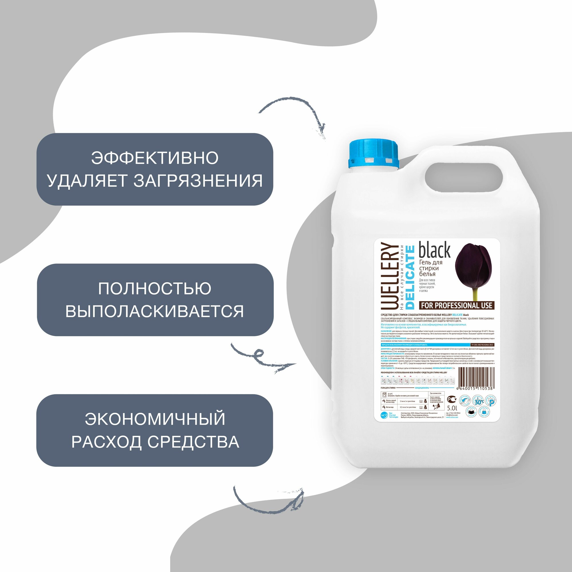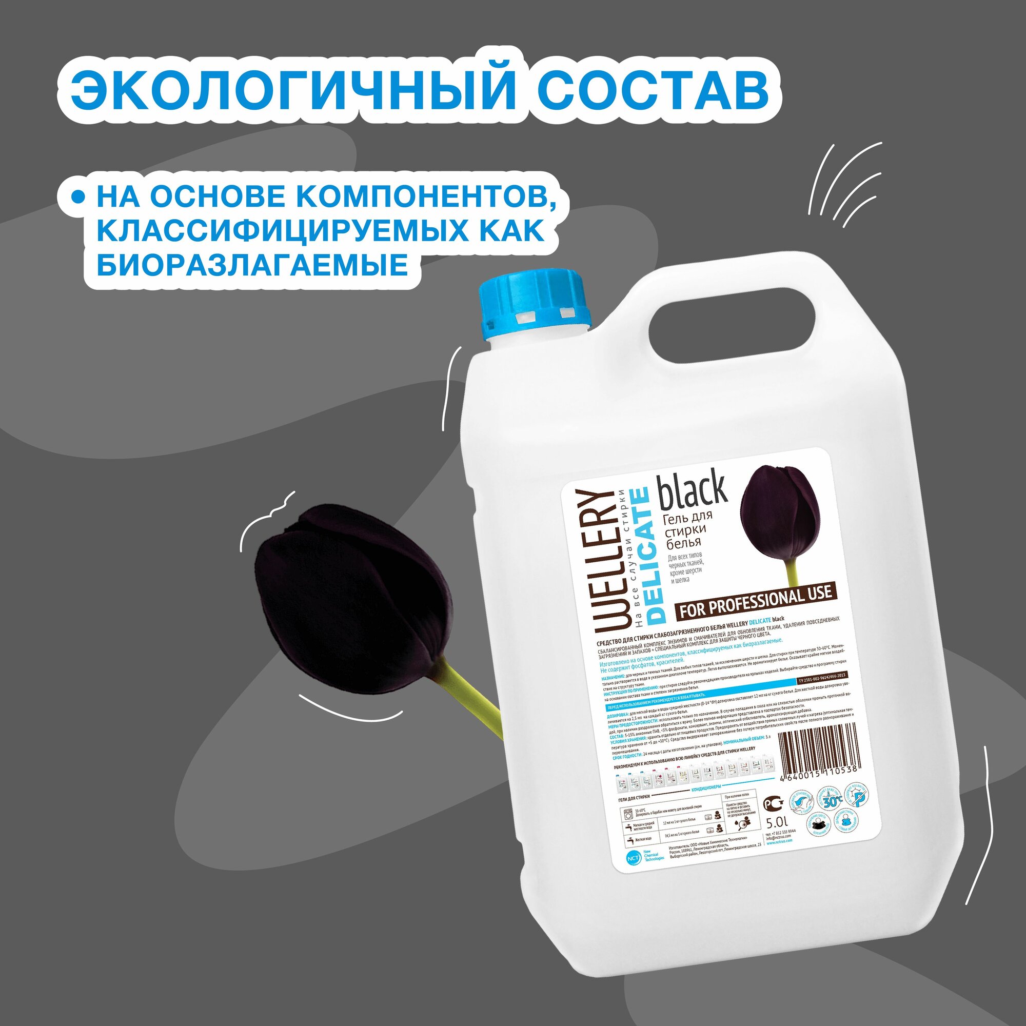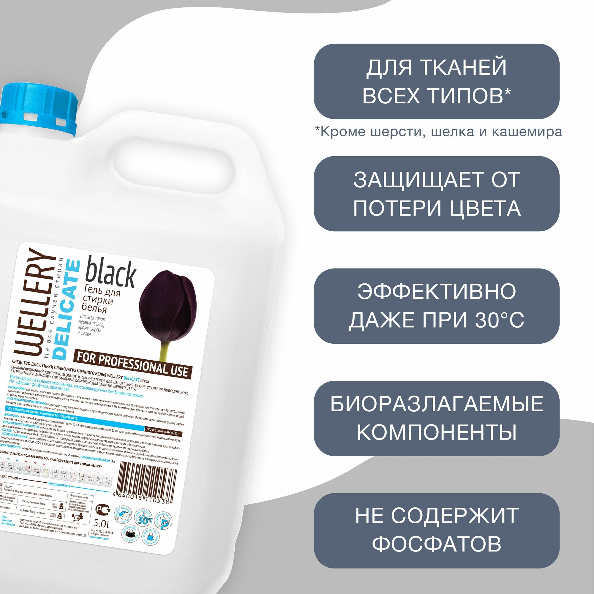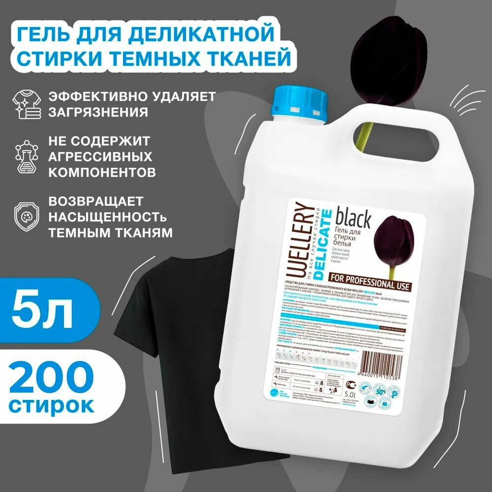 Гель для стирки WELLERY DELICATE BLACK для деликатной стирки черных и темных вещей, 5 л