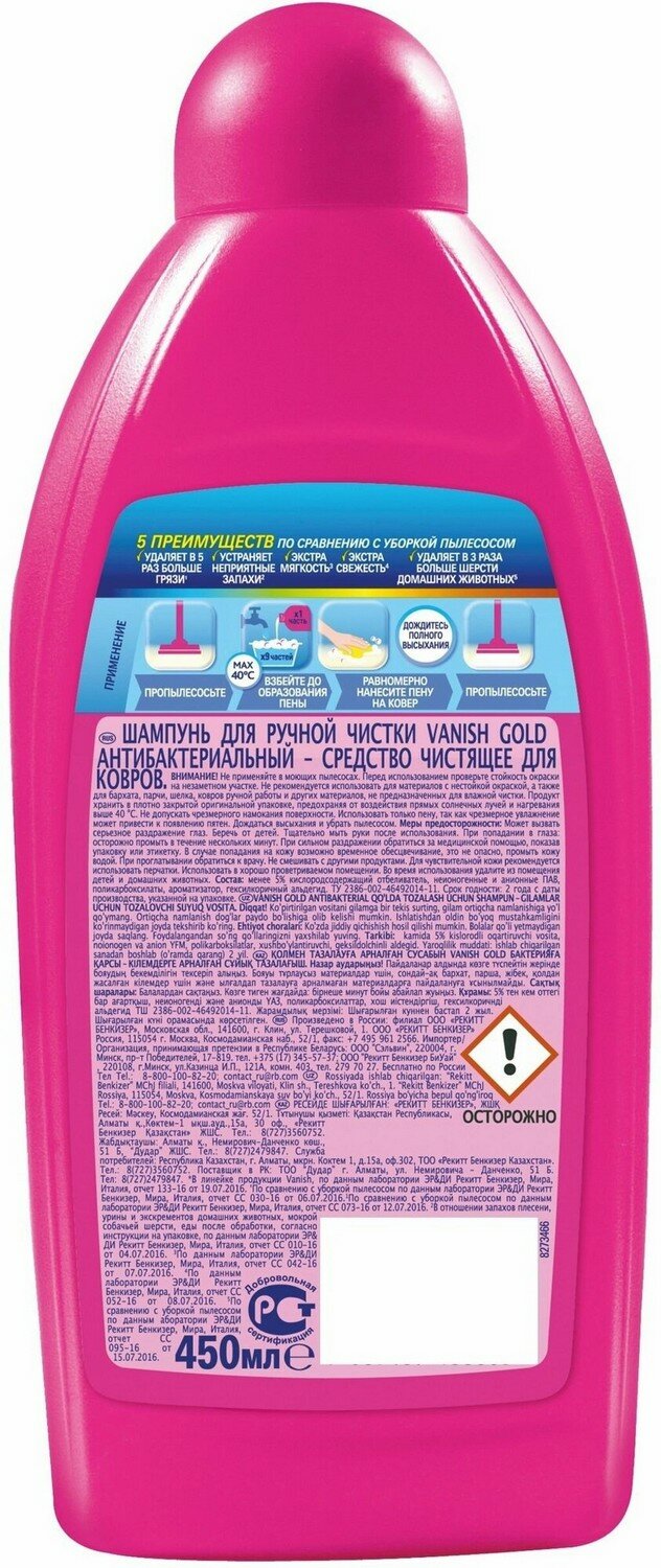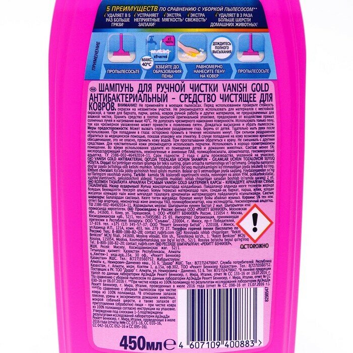 Vanish Gold Шампунь антибактериальный для ручной чистки ковров, 450 мл , 1 шт интересное:
