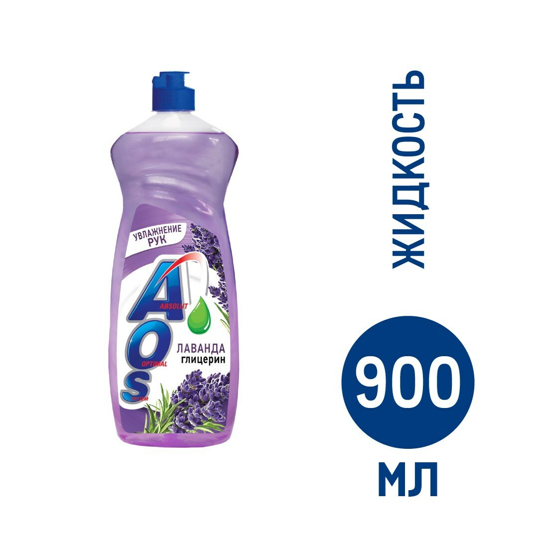 Жидкость для мытья посуды AOS с лавандой и глицерином 900 мл