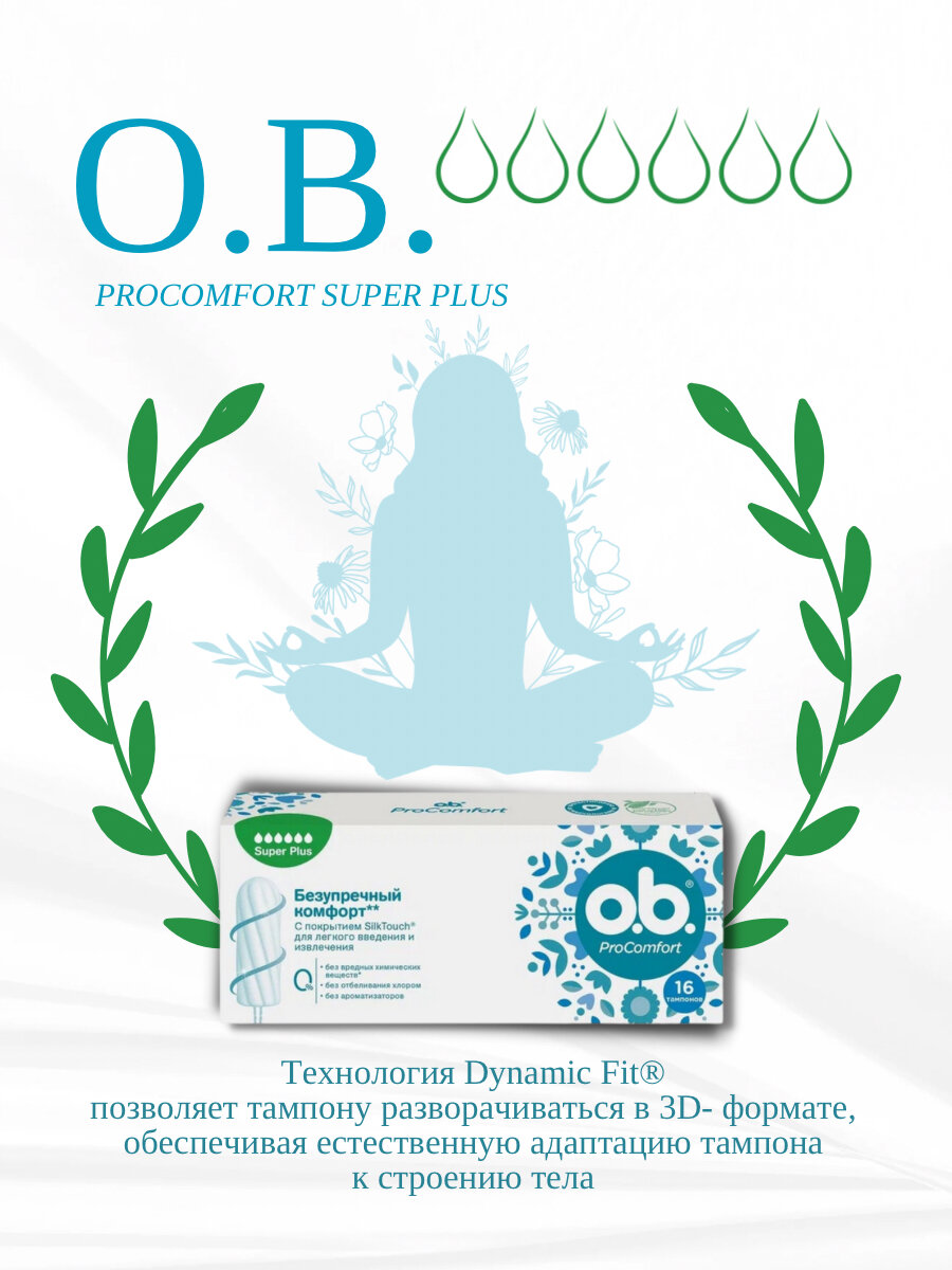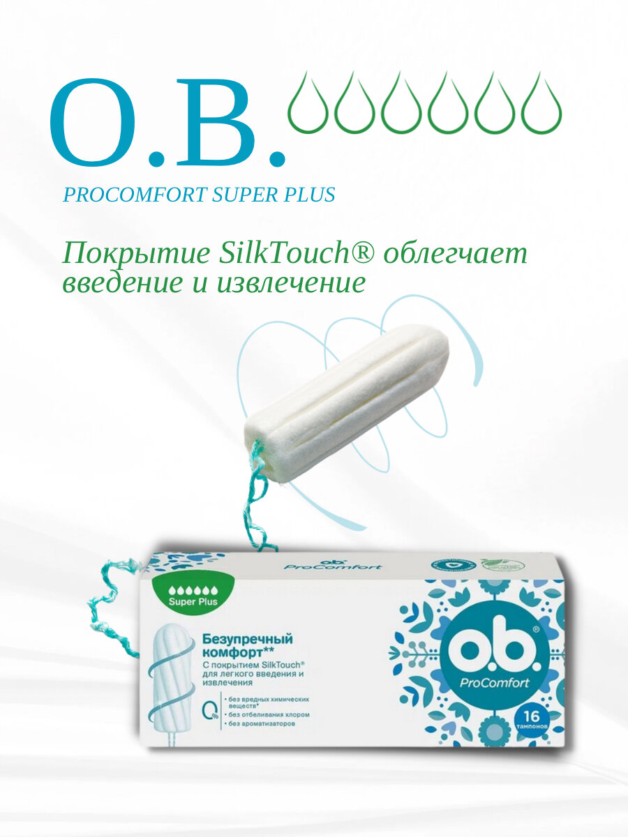 O.B. ProComfort Super Тампоны, 4 капли, 16 шт /средство личной гигиены/для критических дней