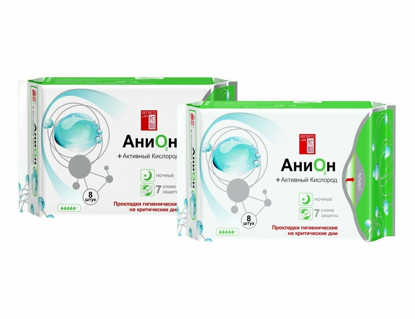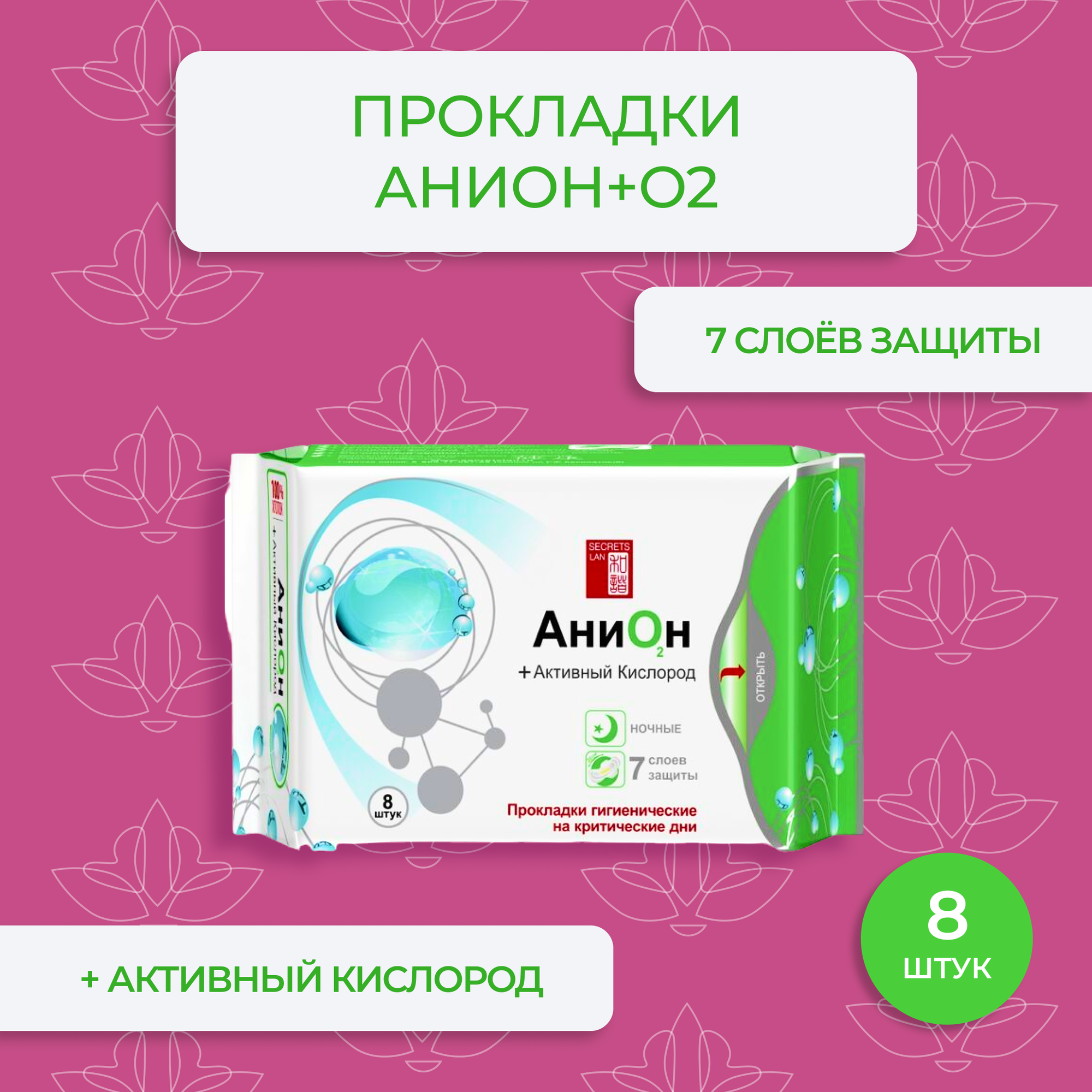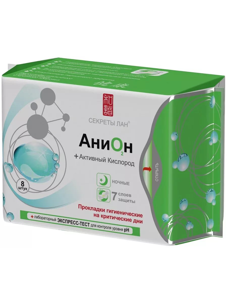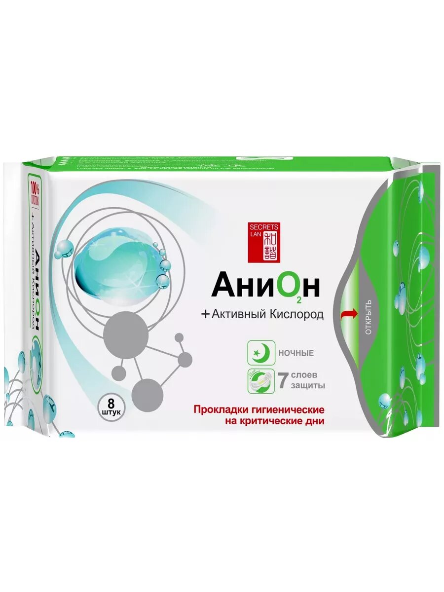 SECRETS LAN, АниОн, Прокладки гигиенические на критические дни, Ночные, (8 шт/уп)