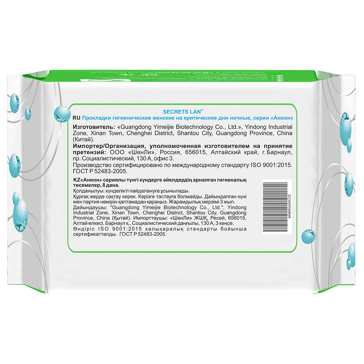 SECRETS LAN Анионовые прокладки ночные для критических дней «Анион», 8 шт, SECRETS LAN