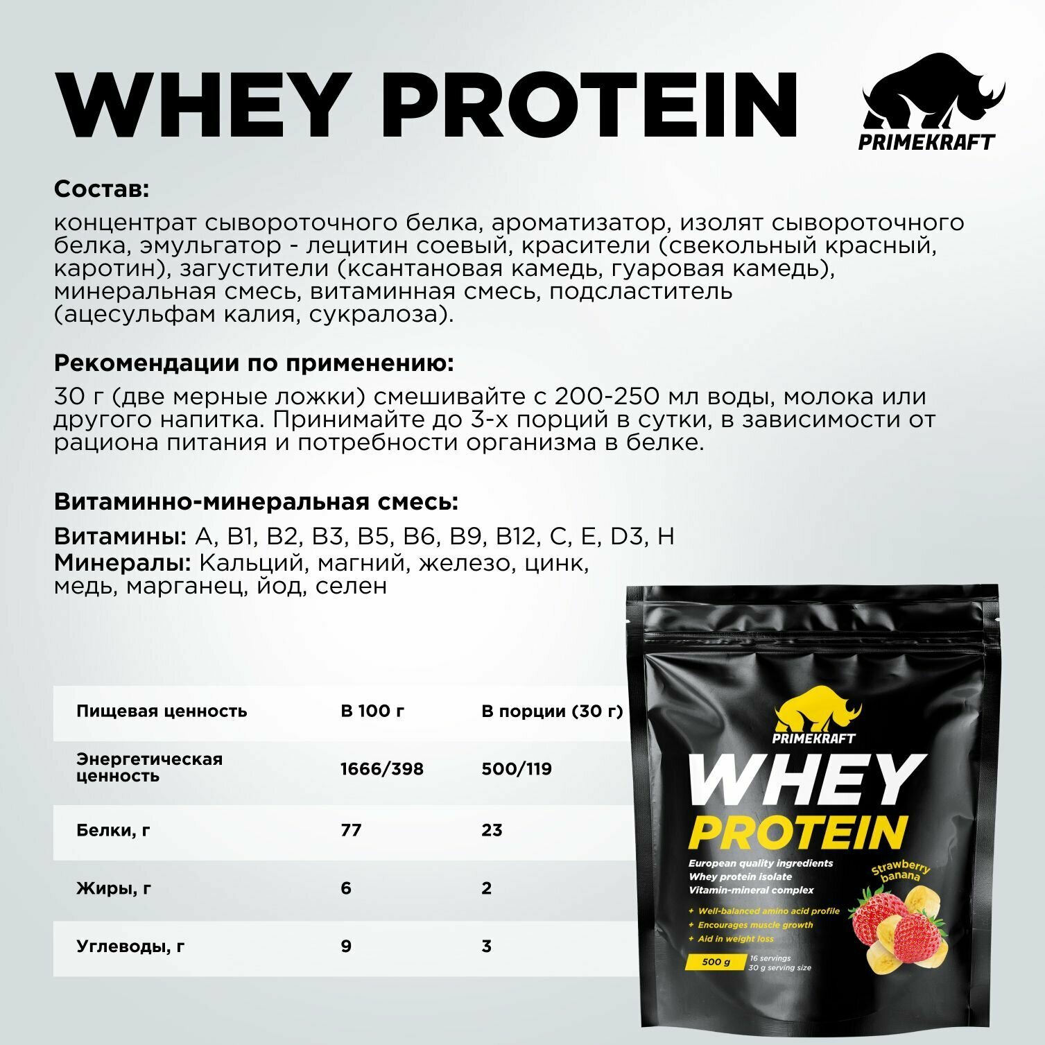 Протеин сывороточный PRIMEKRAFT Whey Protein, Клубничный йогурт 500 г / 16 порций