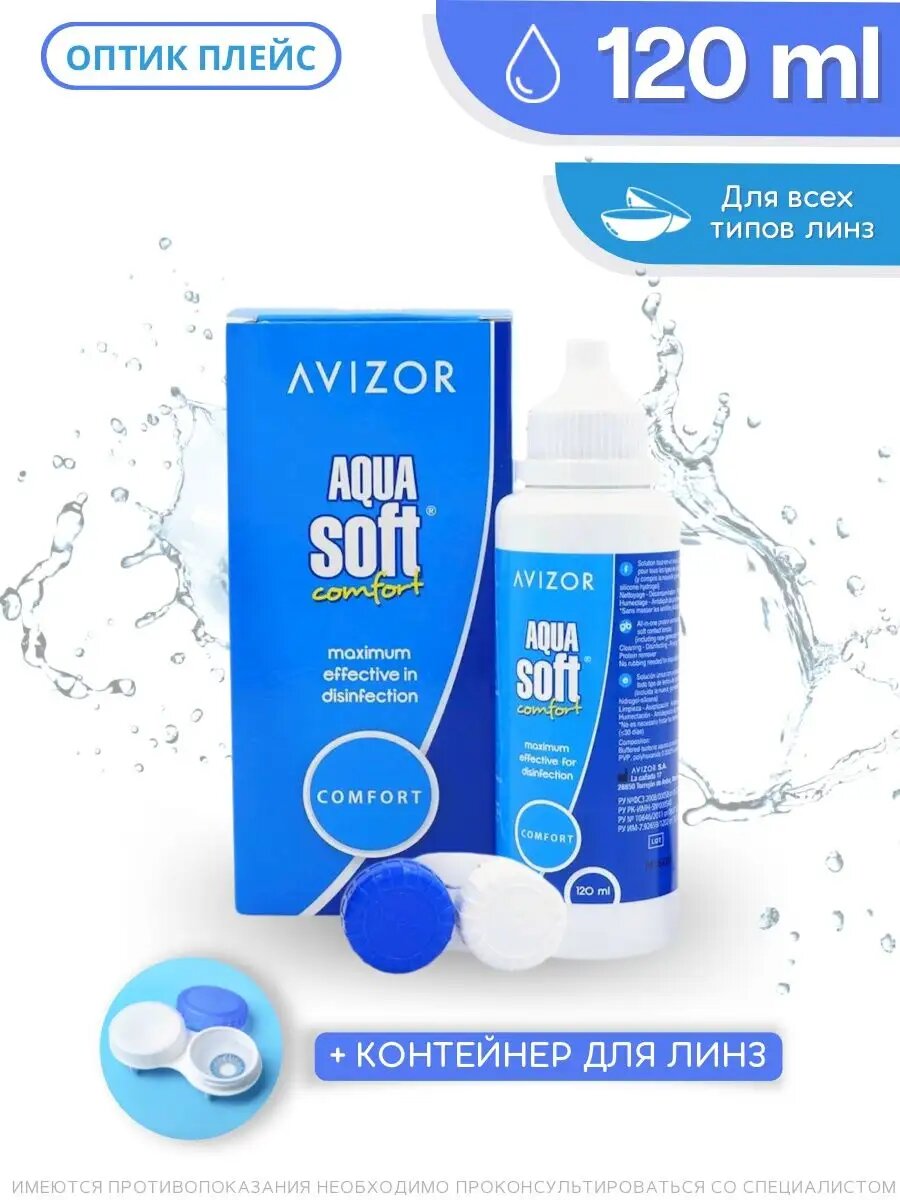 Avizor Aqua Soft Comfort многоцелевой раствор для контактных линз, 120 мл с контейнером для линз. Авизор Аквасофт Комфорт