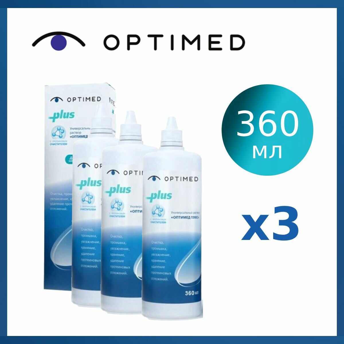OPTIMED plus, 360 мл - 3 шт. Оптимед плюс, Раствор для контактных линз