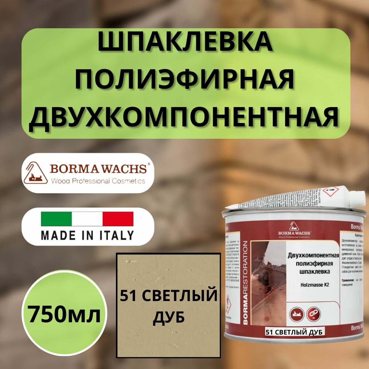 Шпаклевка полиэфирная 51 Светлый дуб BORMA WACHS (Борма) Holzmasse K2 750мл 1960RO-6T